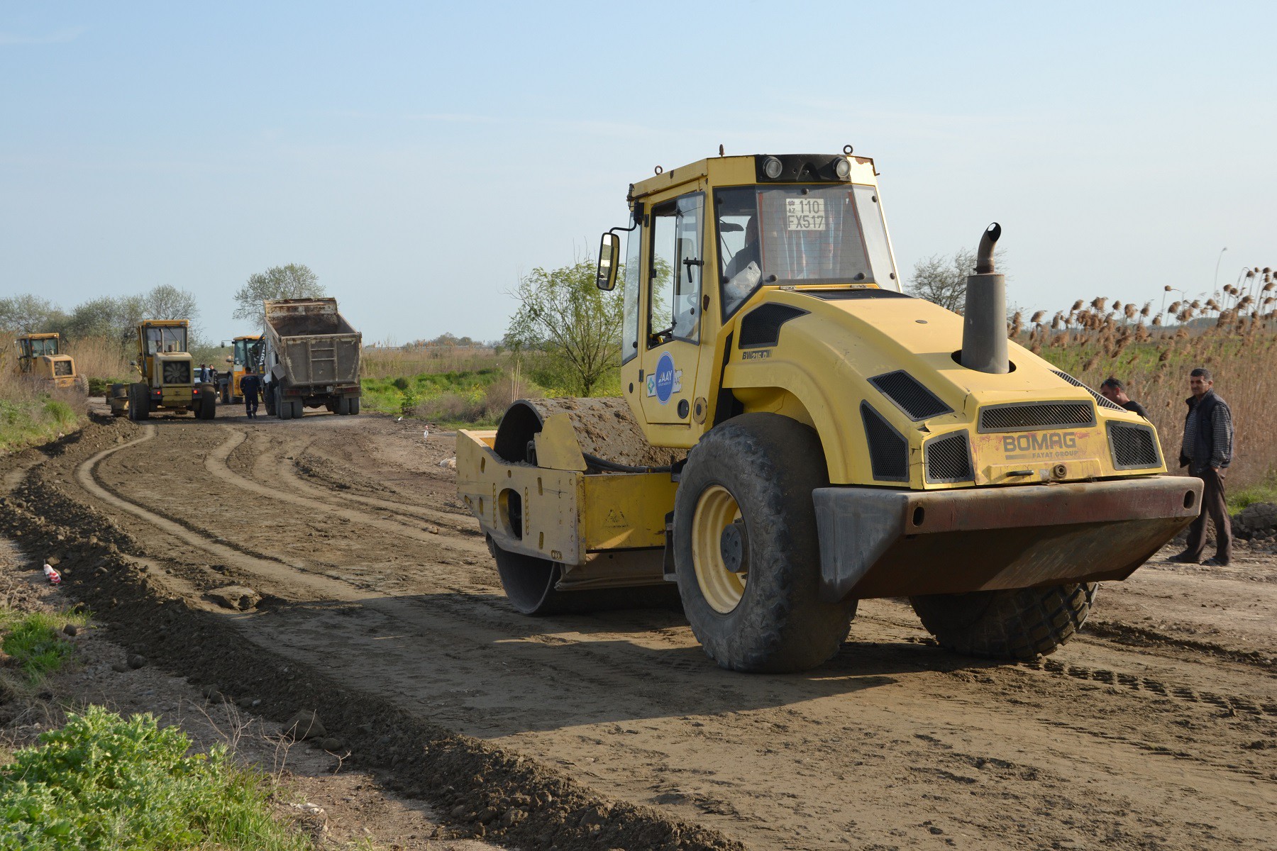 Tikinti layihəsinə uyğun olaraq 900 kub.m ölçüdə yararsız qruntun qazılıb çıxarılması, əvəzinə yararlı material tökülərək əks-dolğu və kipləşdirmə işləri aparılıb. Bu işlərə paralel olaraq yol boyu 52 min kv.m sahədə çiyin hissələrin optimal qum-çınqıl qarışığı ilə bərkidilməsi işləri də görülüb.