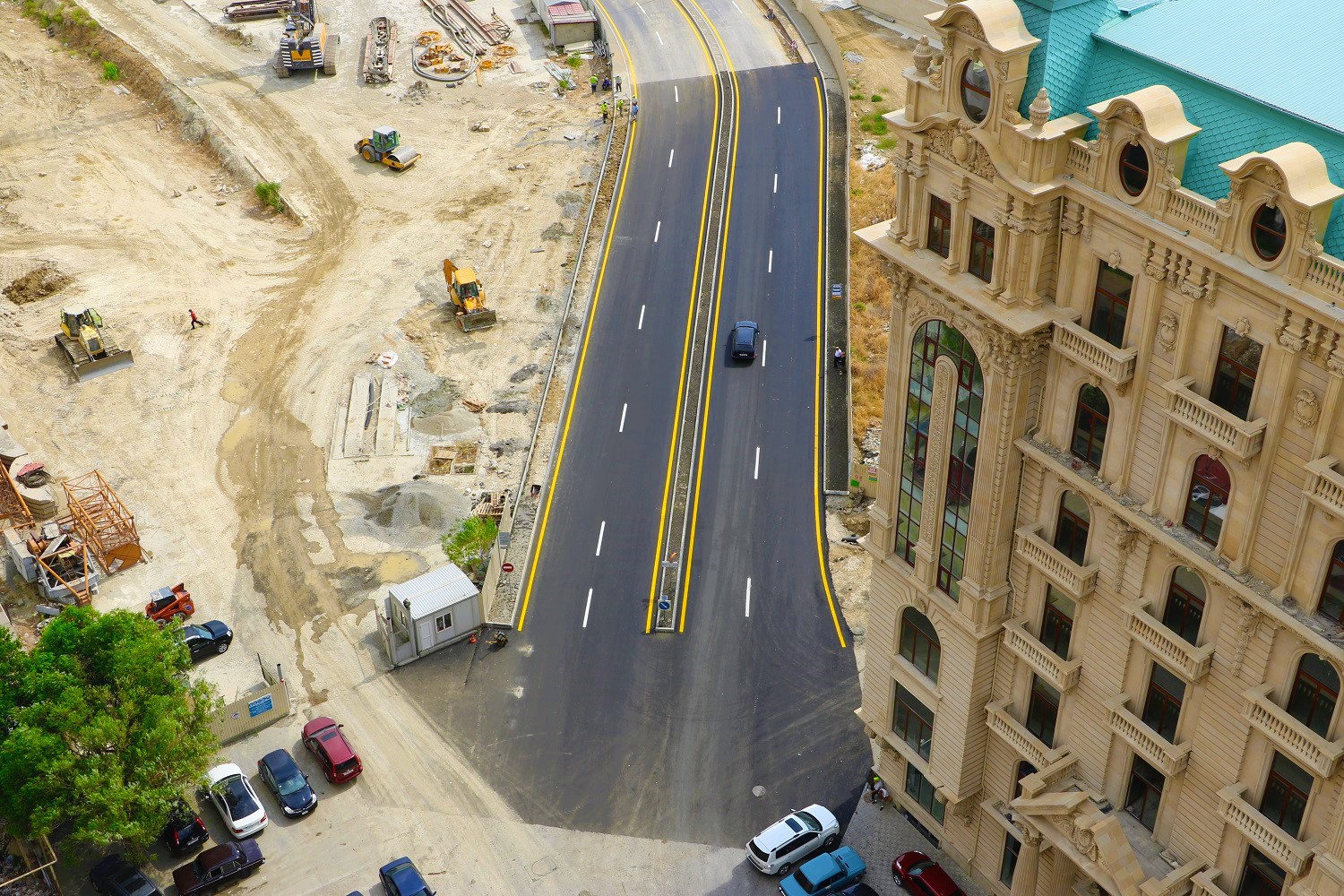 Müvəqqəti alternativ yolun altında aşkarlanan və söküntüsü yarımçıq aparılmış binanın 2 mərtəbəli zirzəmisinin mərtəbələrarası hissəsi sökülüb, əks-dolğu işləri aparılıb. Daha sonra yeni yol yatağl və yol əsası inşa edilərək, asfaltlanma işləri görülüb.