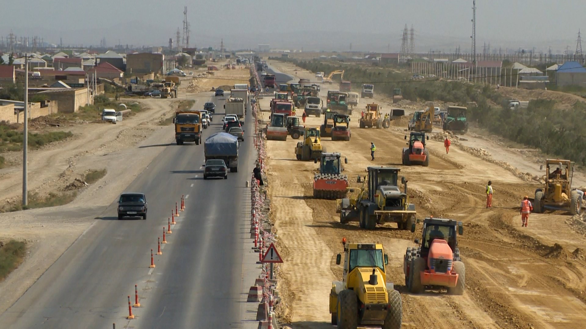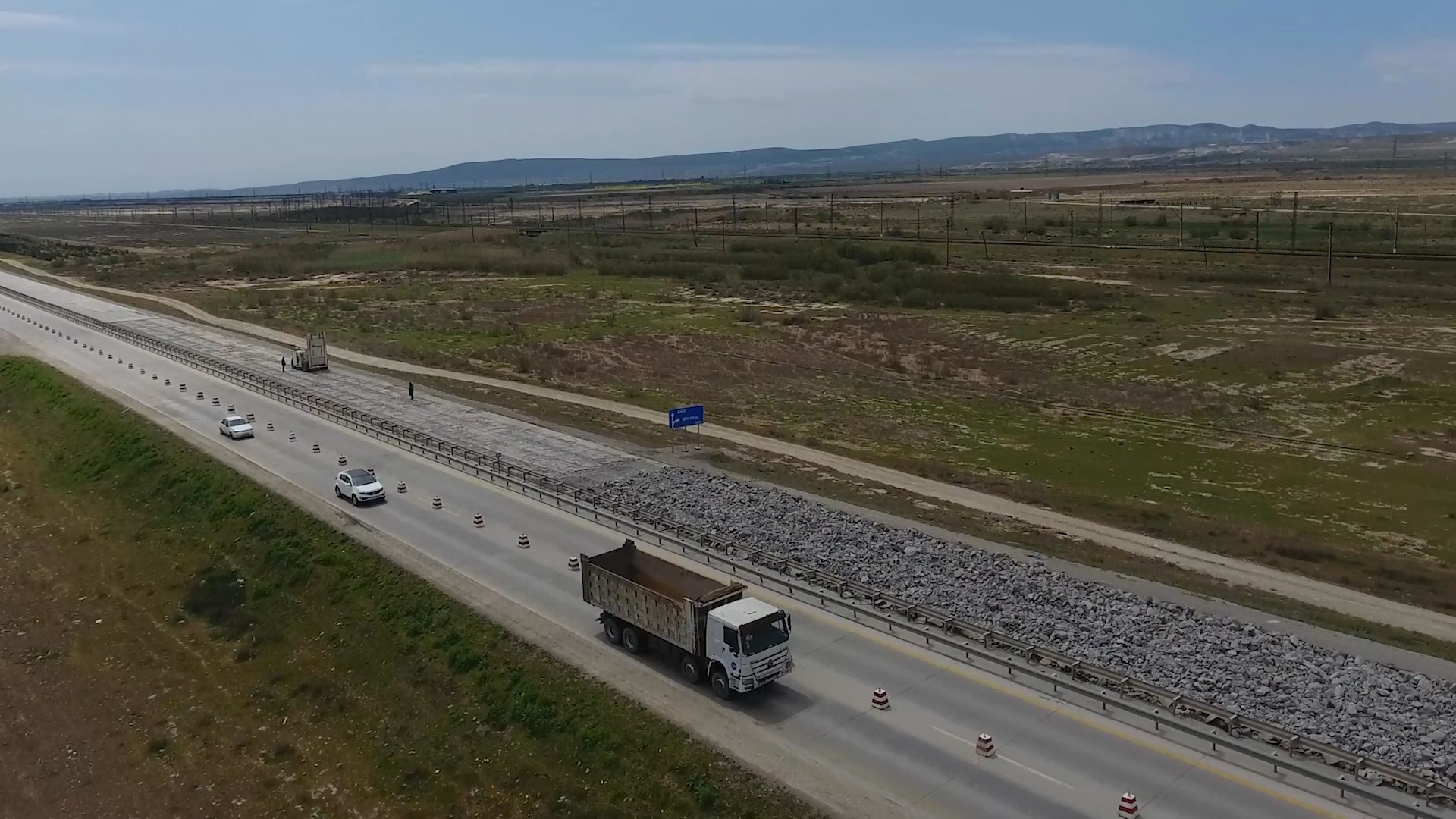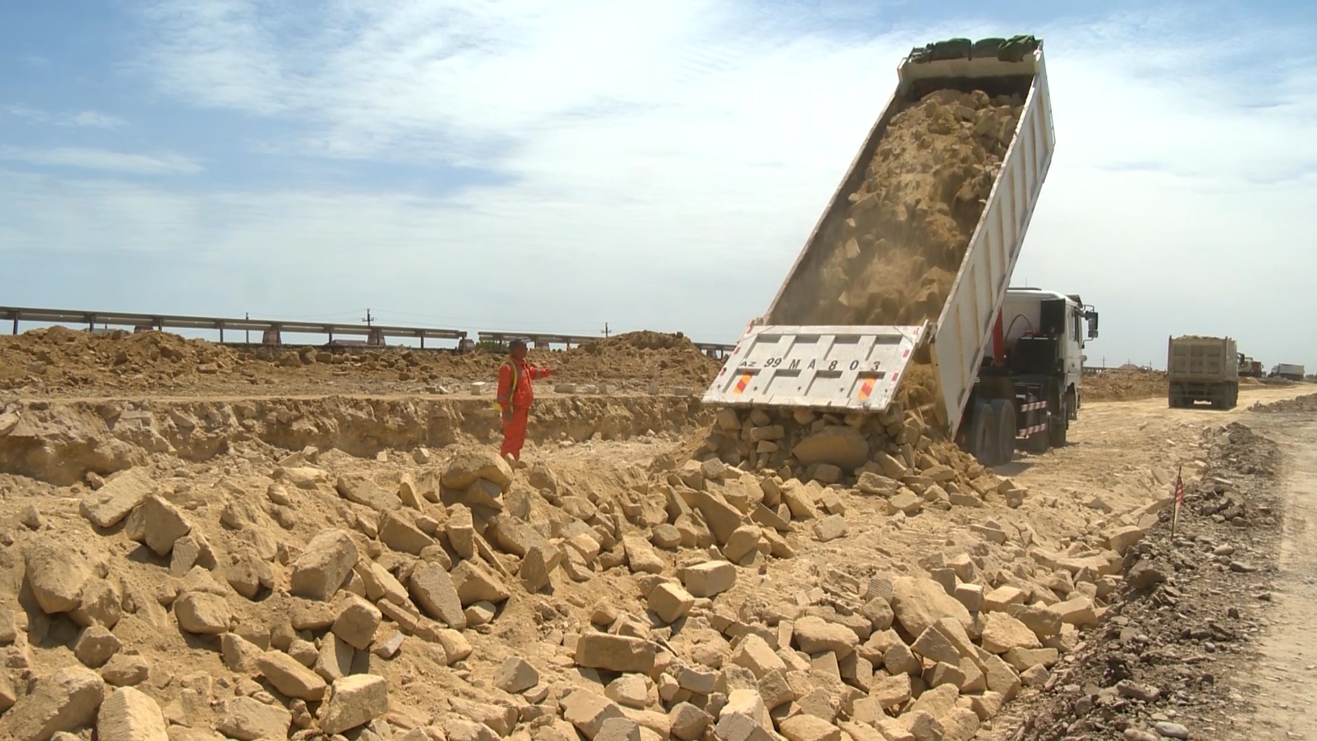 Bu məqsədlə artıq 13 min kub.m həcmdə mövcud sement-beton örtüyü sökülərək sahədan kənarlaşdırılıb, 55 min kub.m həcmdə asfalt frezlənib, yola düşən kommunikasiya xətləri kənarlaşdırılıb, mövcud yolun yatağı ərazilərdən asılı olaraq 1-1.6 metr dərinlikdə və 165 min kub.m həcmdə qazılaraq çıxarılıb, əvəzinə 366 min kub.m yararlı material tökülərək lay-lay yayılaraq kipləşdirilib, 31 min kub.m qaya dolğusu işləri aparılıb.