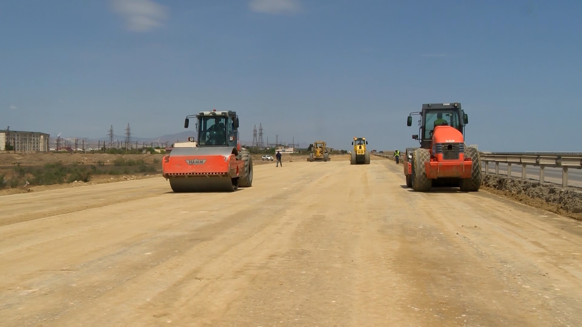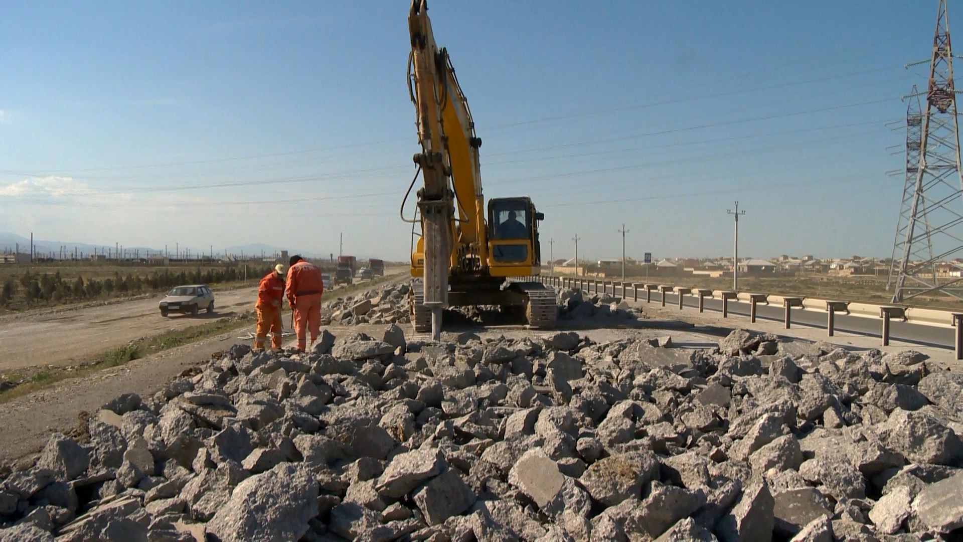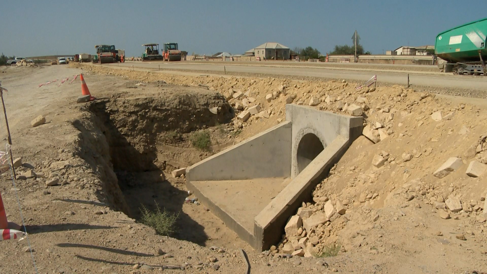Bu məqsədlə artıq 13 min kub.m həcmdə mövcud sement-beton örtüyü sökülərək sahədan kənarlaşdırılıb, 55 min kub.m həcmdə asfalt frezlənib, yola düşən kommunikasiya xətləri kənarlaşdırılıb, mövcud yolun yatağı ərazilərdən asılı olaraq 1-1.6 metr dərinlikdə və 165 min kub.m həcmdə qazılaraq çıxarılıb, əvəzinə 366 min kub.m yararlı material tökülərək lay-lay yayılaraq kipləşdirilib, 31 min kub.m qaya dolğusu işləri aparılıb.