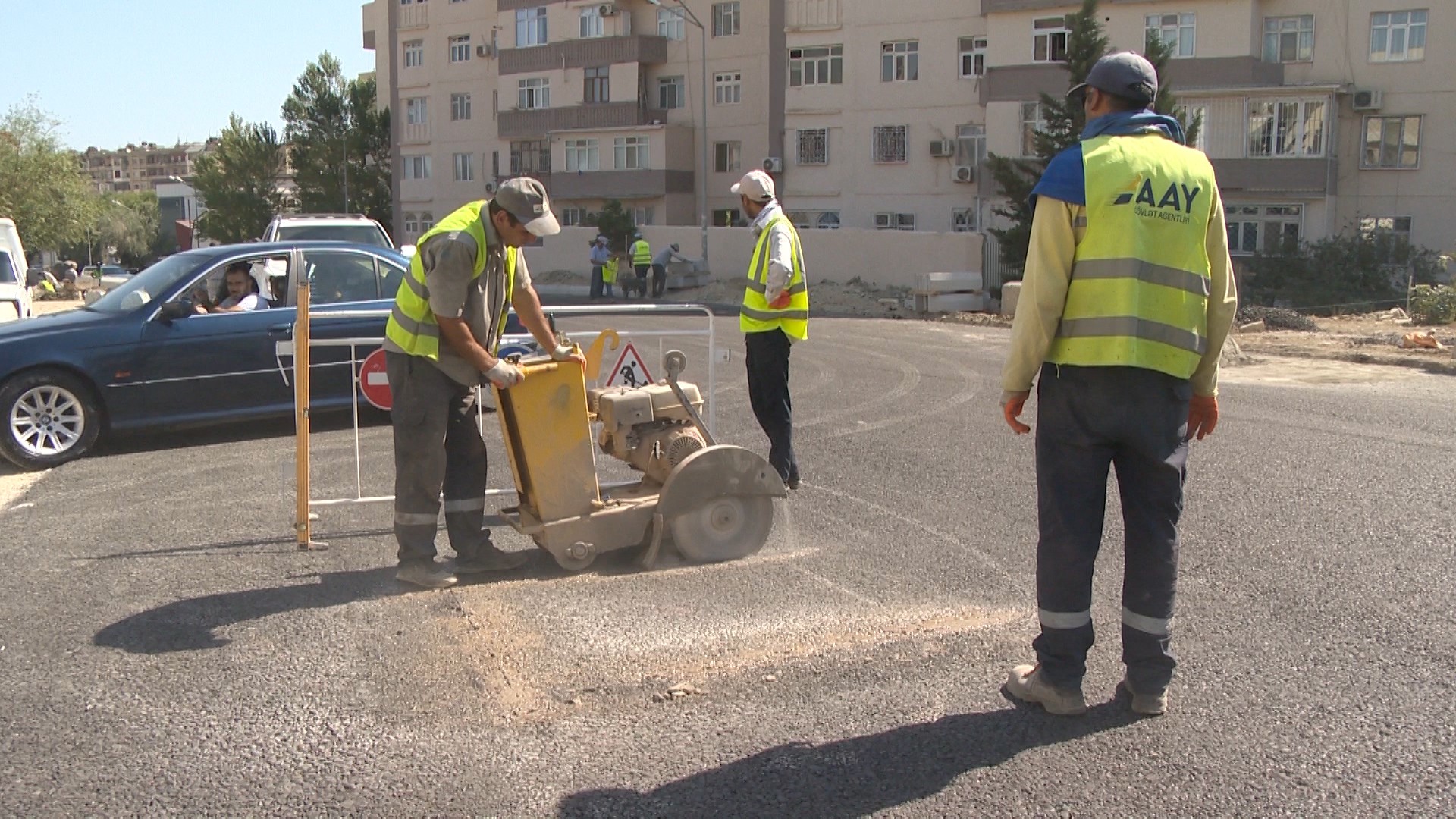 Asfaltlanma işləri bitən kimi küçələr boyu avtonəqliyyat vasitələrinin normal hərəkətini təmin etmək məqsədi ilə 90 ədəd yol nişanları quraşdırılacaq, yolun üfüqi nişanlama xətləri çəkilərək.