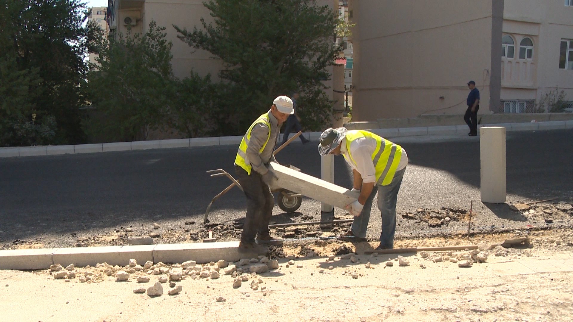 Bu işlərin ardınca zəruri olan ərazilərdə 5800 kub.m həcmdə yol əsası inşa edilib. Daha sonra həmin ərazilərə əlaqələndirici bitum səpilməklə düzləndirici asfalt-beton qatı döşənib. Texnoloji ardıcıllığa uyğun olaraq növbəti mərhələdə küçələrə 2 laydan ibarət yeni asfalt-beton örtüyünün döşənməsi işlərinə başlanılıb. İri və xırda dənəli olmaqla küçələrin 26 min kv.m sahəsinin asfaltlanması nəzərdə tutulub.