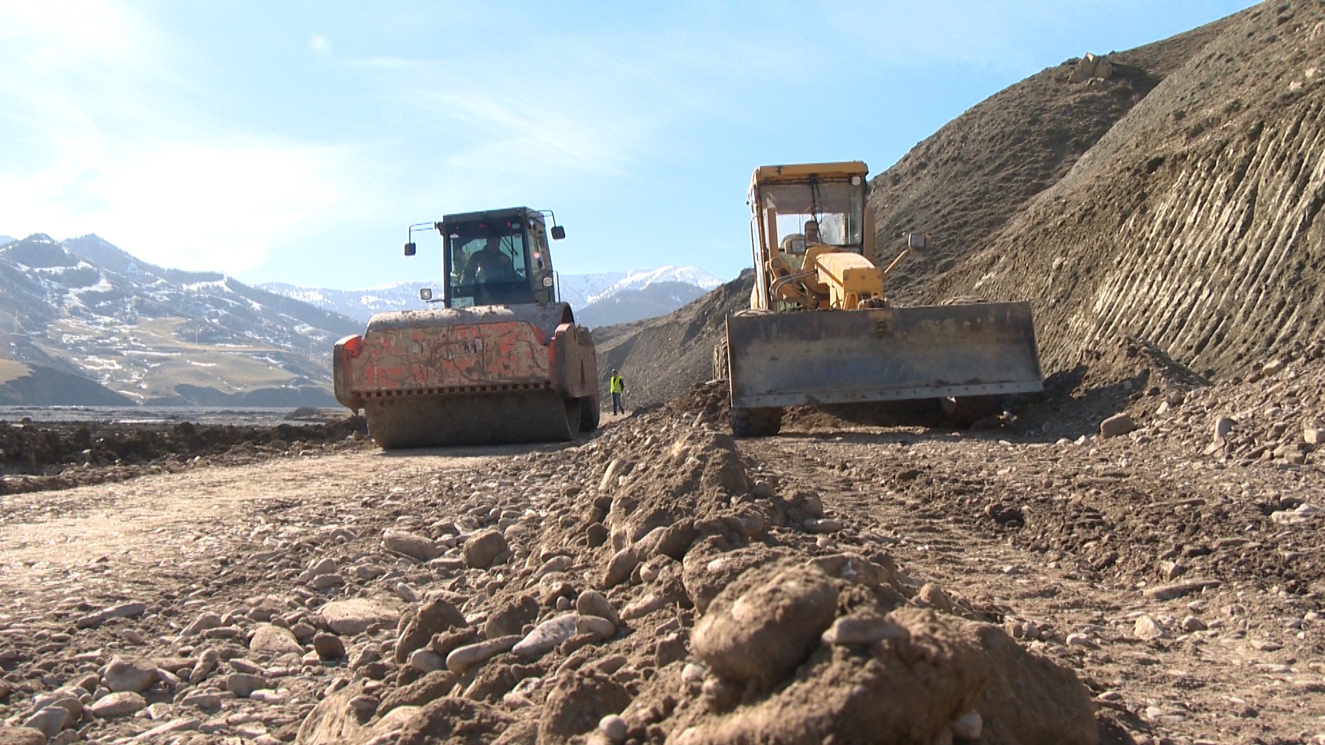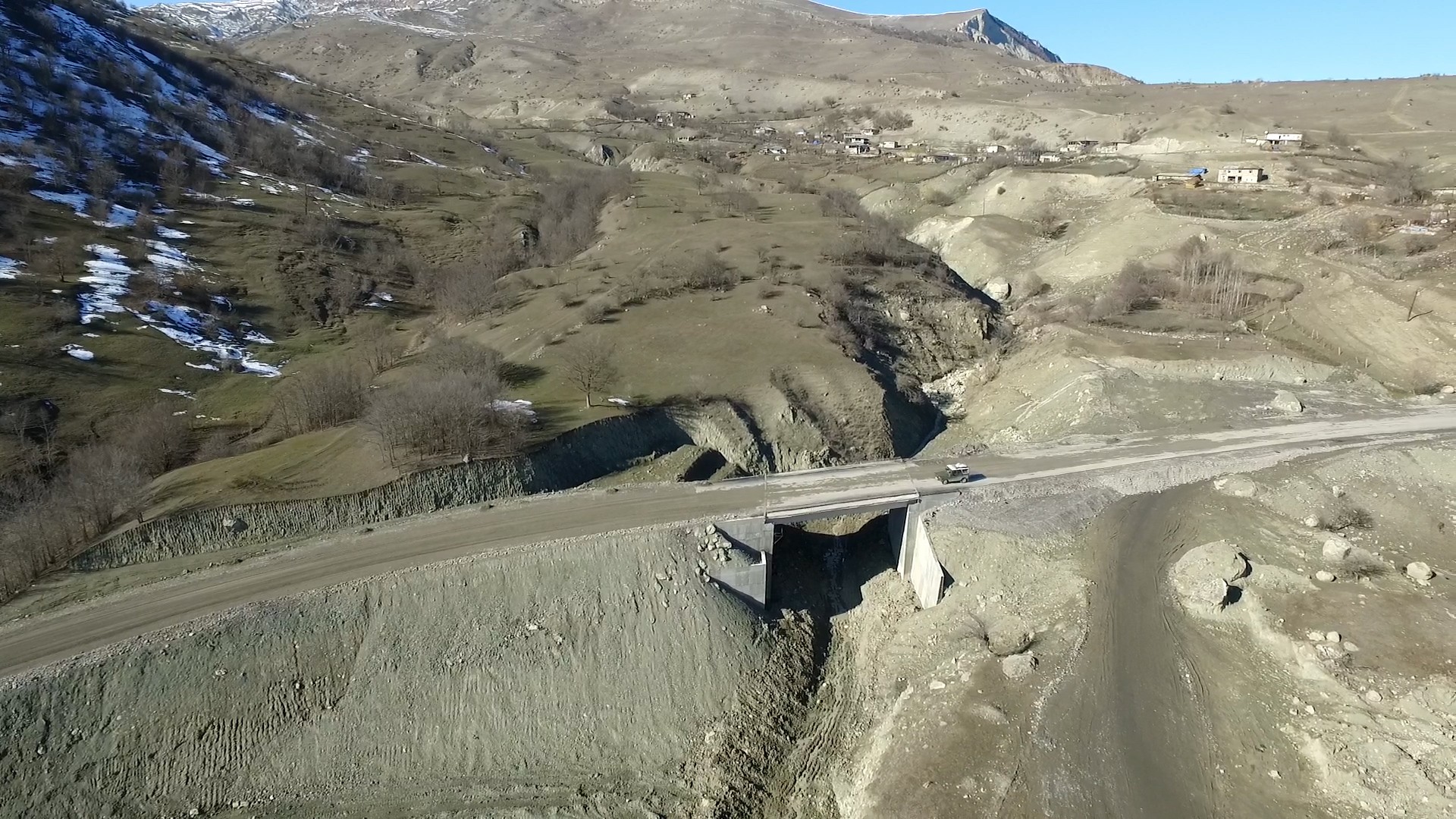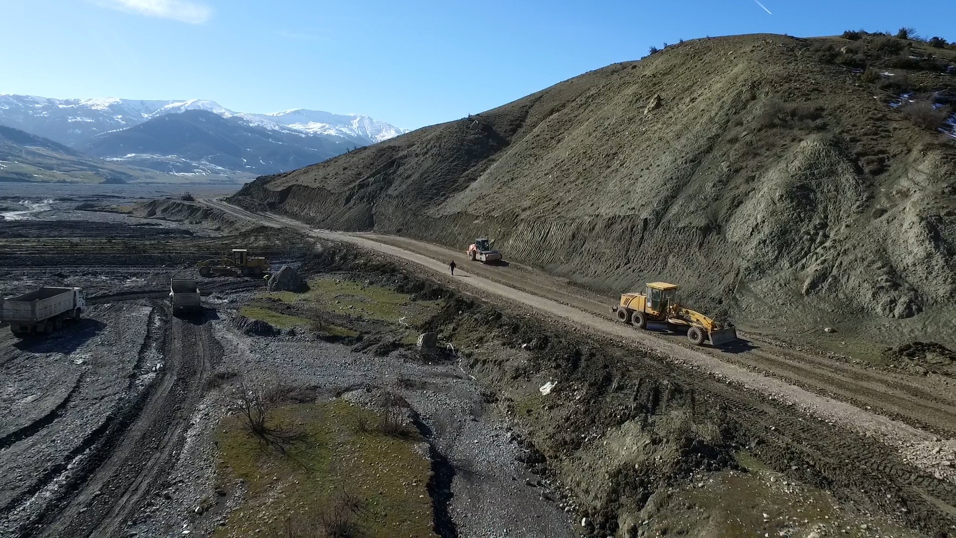 Bu səbəbdən də layihə çərçivəsində mövcud örtük sökülərək kənara daşınıb, yararsız qruntun qazılaraq çıxarılması, əvəzinə yararlı material tökülərək kipləşdirilməsi işləri görülüb, bəzi yerlərdə yolun normativ eninin alınması üçün dağ yamaclarının qaya tipli süxurları kəsilərək çıxarılıb və torpaq yatağı genişləndirilərək tələb olunan hündürlüyə qaldırılıb, yatağın yamacları mexaniki üsulla hamarlanıb.