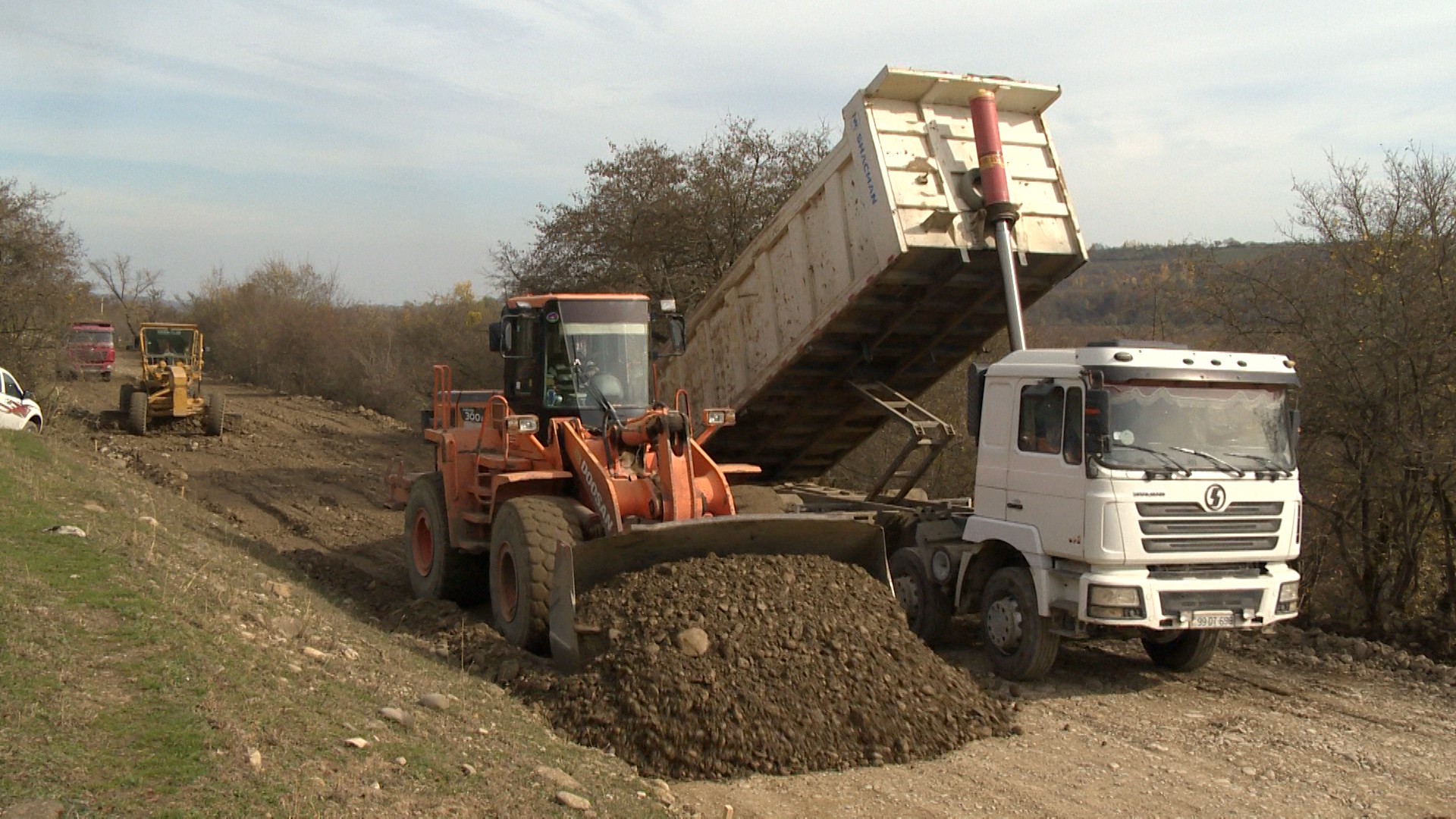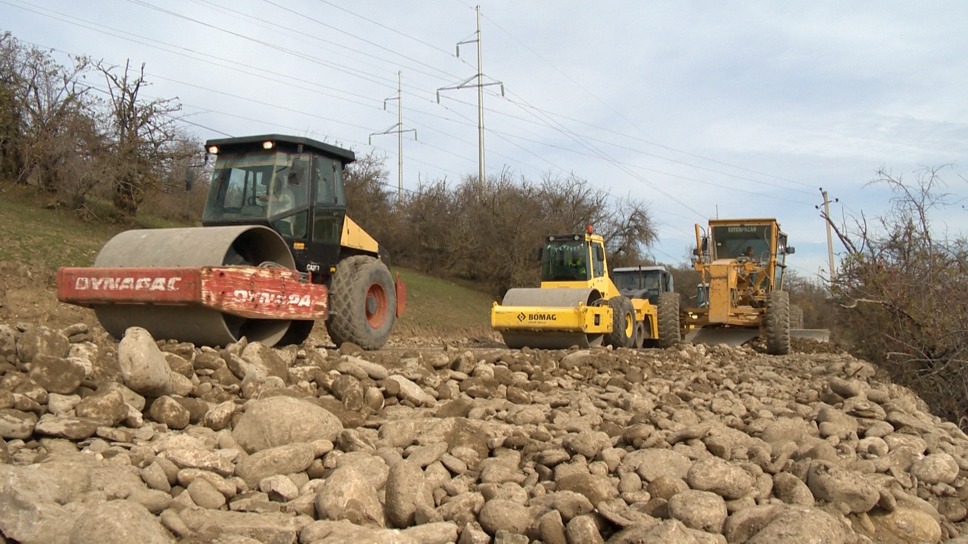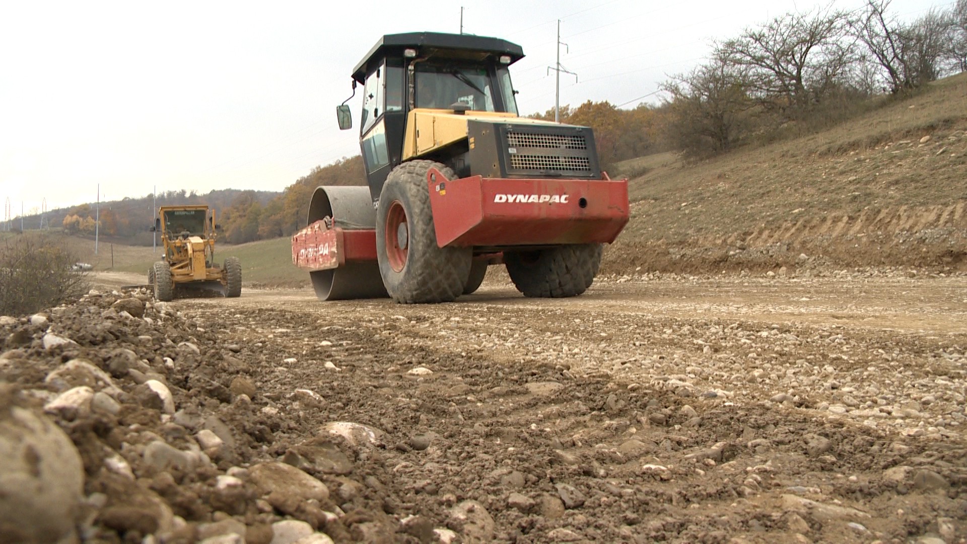 Tikinti layihəsinə uyğun olaraq yol yatağının deformasiyaya uğramış yararsız qruntu qazılaraq çıxarılır, əvəzinə yararlı qruntla əks-dolğu aparılaraq kipləşdirmə işləri görülür və yeni yol yatağı inşa edilir, yolun normativ eninin alınması üçün müəyyən hissələrdə qaya tipli süxurların mexanizmlə kəsilməsi işləri görülür, yol profilə salınır. Yol əsasının tikintisi üçün isə lazımi qalınlıqda optimal qırmadaş və qum-çınqıl qarışığından istifadə olunur.
