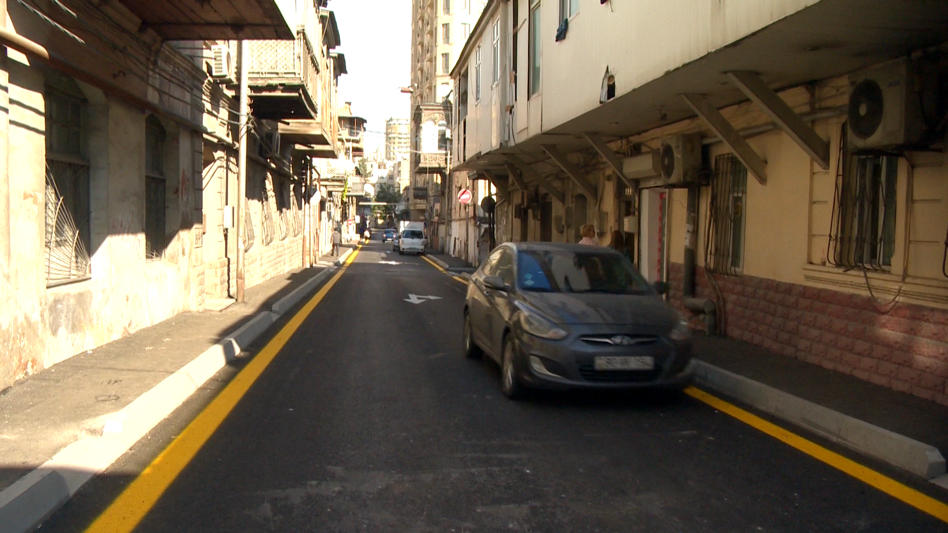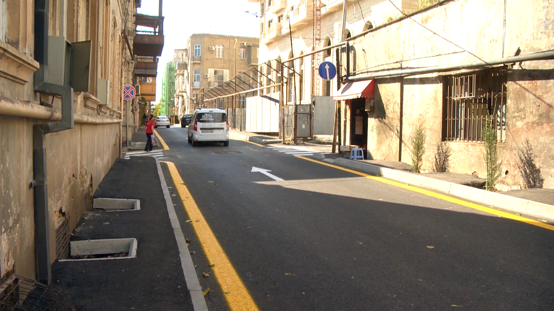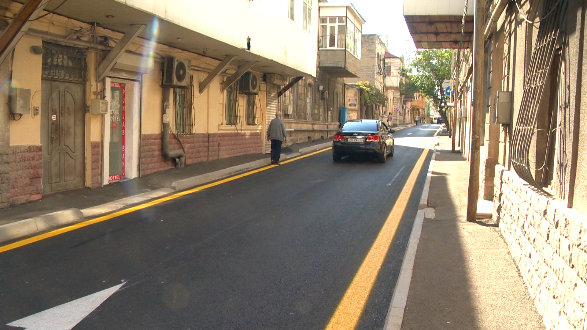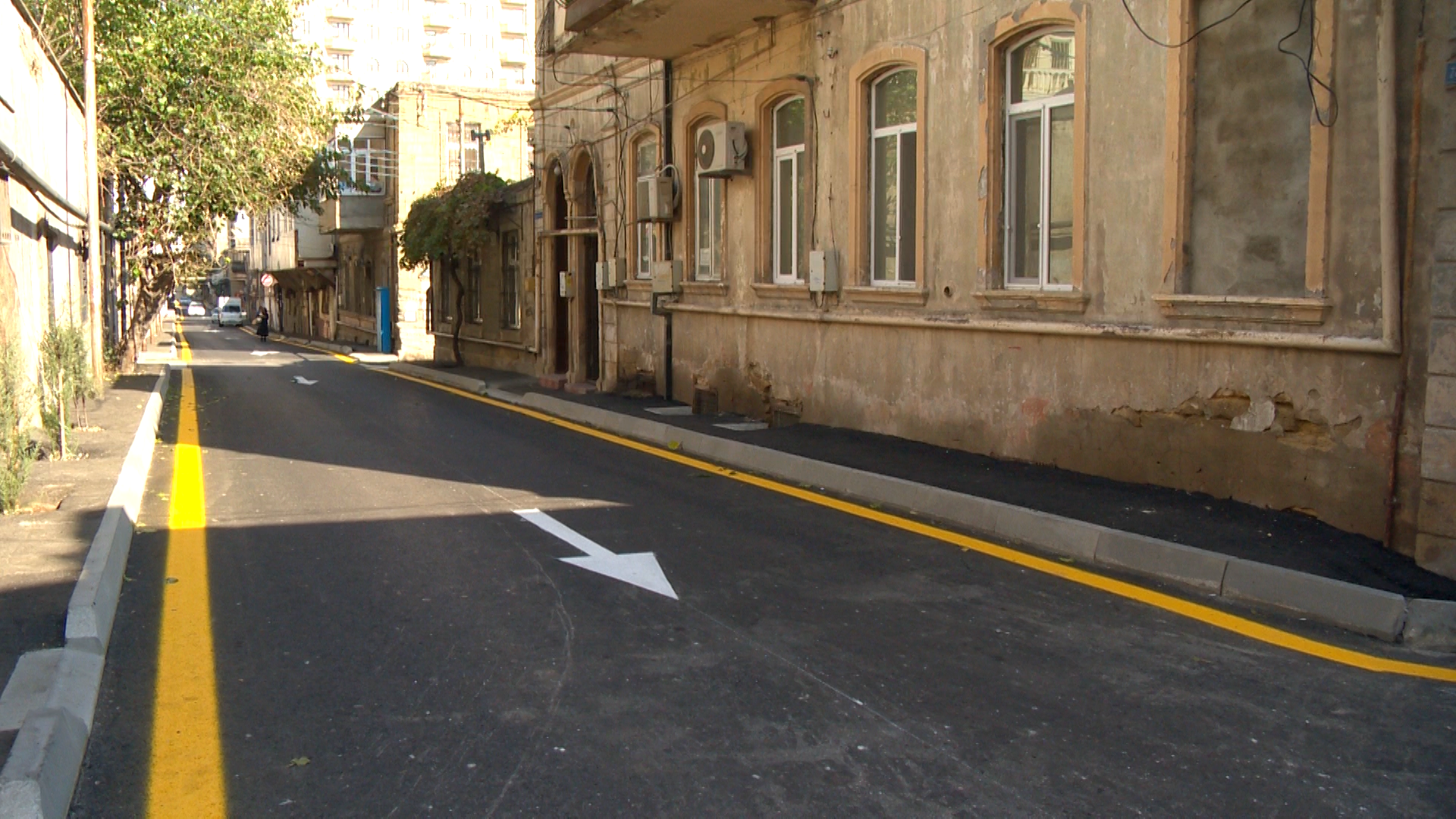 Hərəkət hissəsinin eni ortalama 6 metr olan küçə boyu aparılan təmir işləri çərçivəsində köhnə asfalt beton örtüyünün üst qatı frezlənərək kənara daşınıb, köhnə səki daşları sökülüb, zəruri yerlərdə əsasın deformasiyaya uğramış hissələri bərpa olunub.
