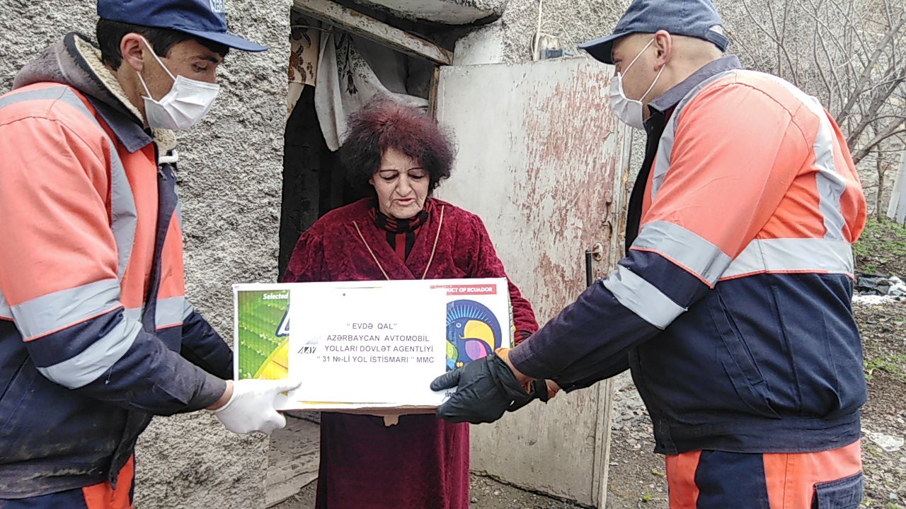Koronavirus (COVID-19) infeksiyasının geniş yayılmasının qarşısını almaq məqsədi ilə ölkədə elan olunmuş xüsusi karantin rejimi müddətində aztəminatlı ailələrə və tənha yaşayan ahıl vətəndaşlara Azərbaycan Avtomobil Yolları Dövlət Agentliyi tərəfindən ərzaq yardımı ilə dəstək olunması davam etdirilir.
