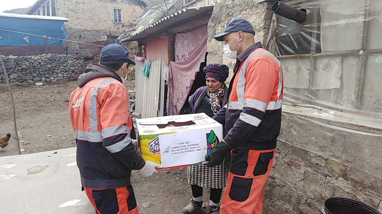 Azərbaycan Prezidenti İlham Əliyevin “Biz Birlikdə Güclüyük!” çağırışına əsasən Azərbaycan Avtomobil Yolları Dövlət Agentliyi Koronavirus (COVID-19) pandemiyası dövründə xüsusi karantin rejiminin tətbiq olunması ilə əlaqədar aztəminatlı ailələrə və tənha yaşayan ahıl vətəndaşlara dəstək olmağa davam edir.