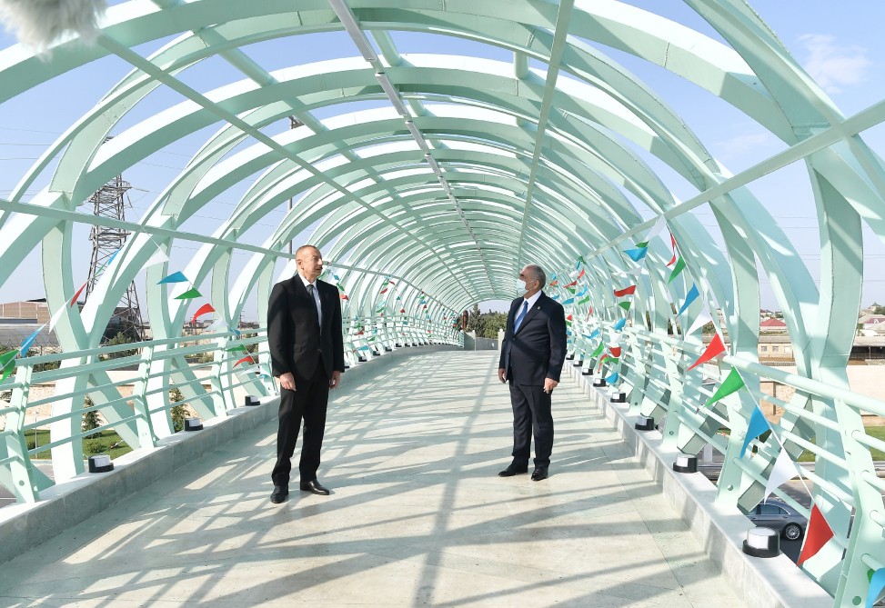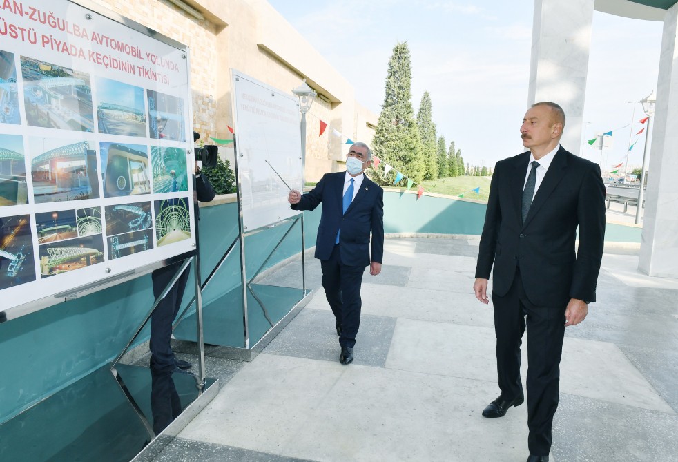 Azərbaycan Respublikasının Prezidenti İlham Əliyev Mərdəkan-Zuğulba avtomobil yolunda yerüstü piyada keçidinin açılışında iştirak edib.