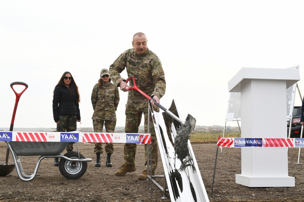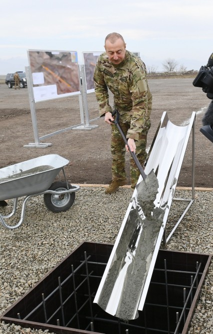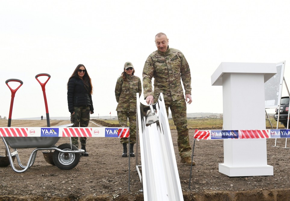 Sonra Prezident İlham Əliyev Füzuli rayonunda beynəlxalq hava limanının təməlini qoydu.