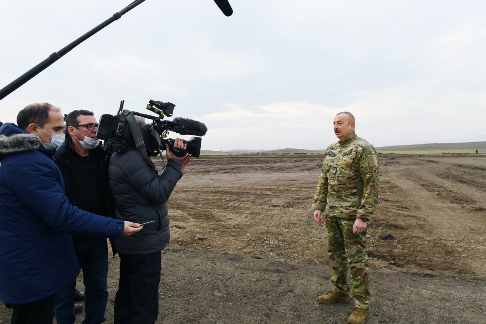 - Bu gün yanvarın 14-də Füzuli Beynəlxalq Hava Limanının təməli qoyuldu. Mən hava limanının tikintisi ilə bağlı Azərbaycan xalqına məlumat vermişdim. Bu, azad edilmiş bölgələrimizin inkişafı üçün çox önəmli bir layihədir. Füzuli Beynəlxalq Hava Limanı bu il istifadəyə verilməlidir. Hər halda uçuş-enmə zolağı bu il istifadəyə verilməlidir. Hava limanının binası isə ola bilər bu il, ola bilər gələn il istifadəyə veriləcək. Bu hava limanının əsas məqsədi xarici qonaqların Şuşaya gəlişini təmin etməkdir. Çünki buradan Şuşaya olan məsafə o qədər də böyük deyil. Nəzərə alsaq ki, bu gün Füzuli-Şuşa dördzolaqlı və bəzi yerlərdə altızolaqlı yeni avtomobil yolunun təməli qoyulub, xarici qonaqlar Füzuli Beynəlxalq Hava Limanına gələrək, çox rahat və qısa müddət ərzində Şuşa şəhərinə gedə biləcəklər.