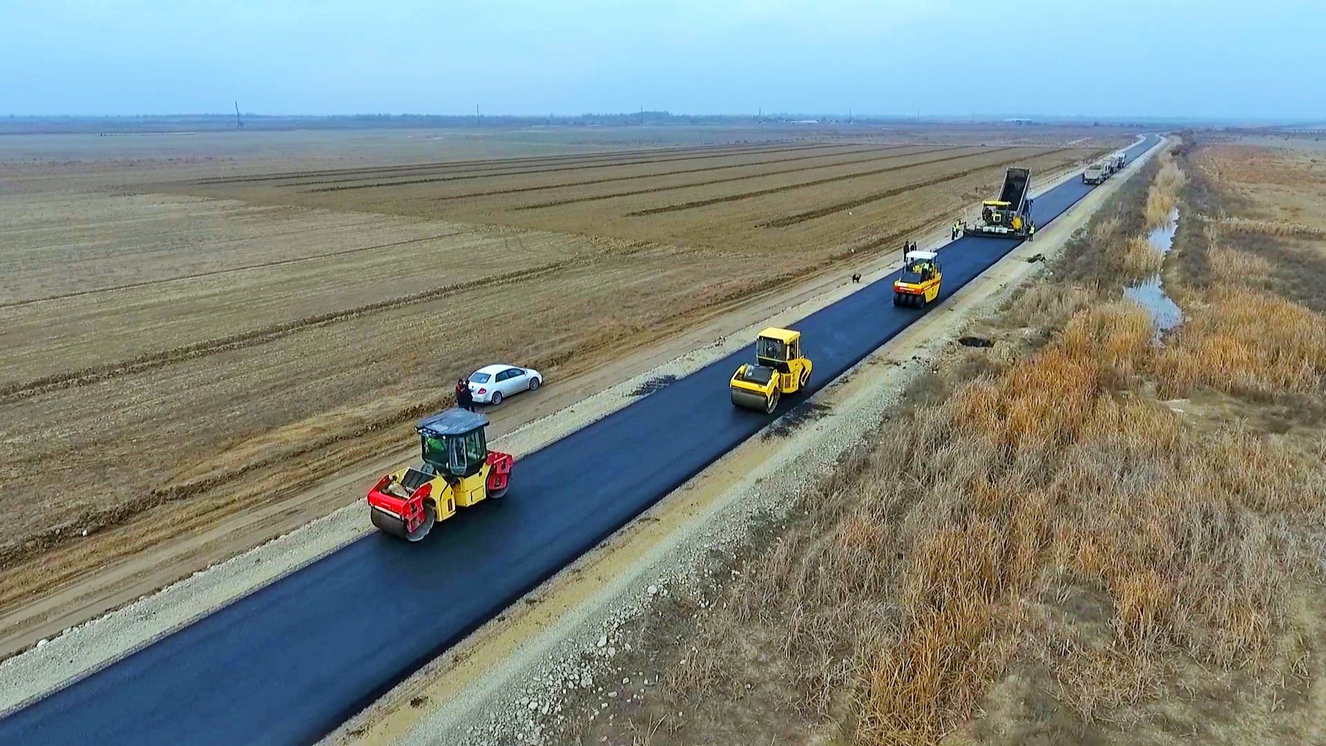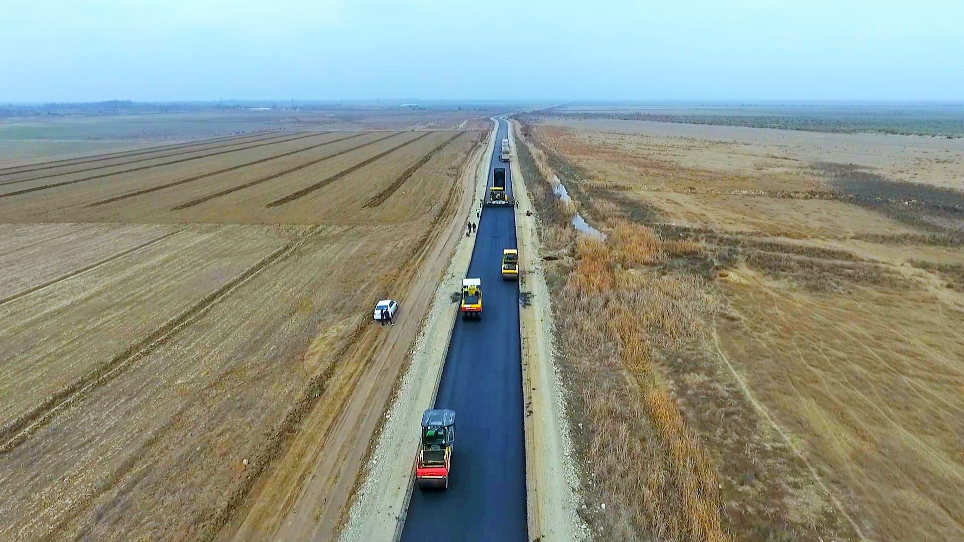 Texnoloji ardıcıllıqla aparılan tikinti işlərinin növbəti, sonuncu mərhələsi üzrə artıq yolun asfaltlanmasına da başlanılıb. Yol örtüyünün alt layının 7 sm qalınlıqda iri dənəli, üst layının isə 5 sm qalınlıqda xırda dənəli asfalt-beton örtüyü ilə tikintisi aparılır. Bu işlər 100 min kv.m-dən çox ərazini əhatə edir.
