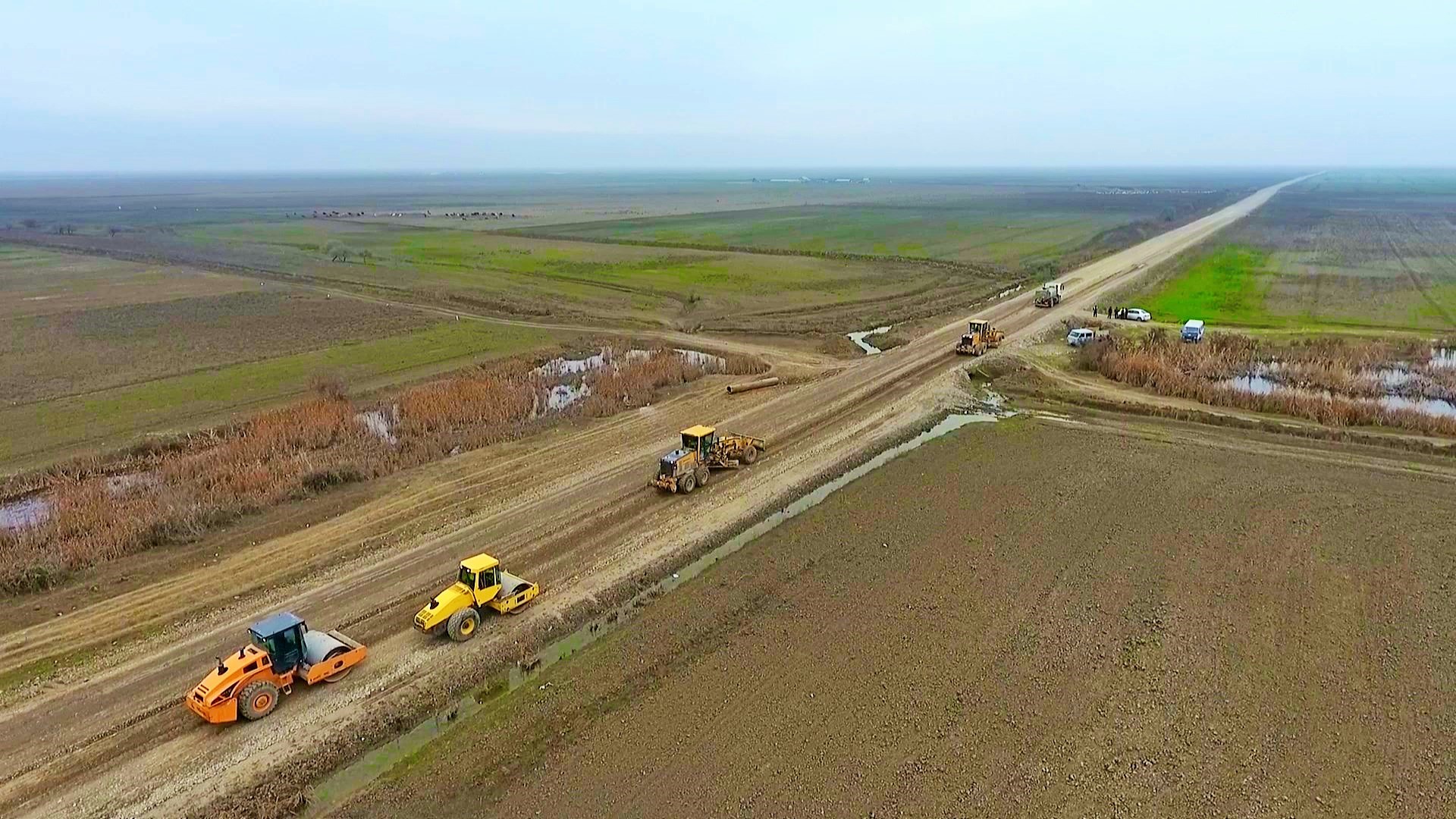 18 km uzunluğa malik avtomobil yolu boyu deformasiyaya uğramış örtüyün bərpası məqsədi ilə zəruri yerlərdə yol yatağı qazılaraq çıxarılıb, genişləndirmə işləri aparılmaqla 10 metr enində yeni yol yatağının inşası istiqamətində addımlar atılıb. Yol yatağı hazır olan hissələrdə yol əsasının tikintisi işləri həyata keçirilir. Bunun üçün qum-çınqıl və optimal-qırmadaş qarışığından istifadə olunur.