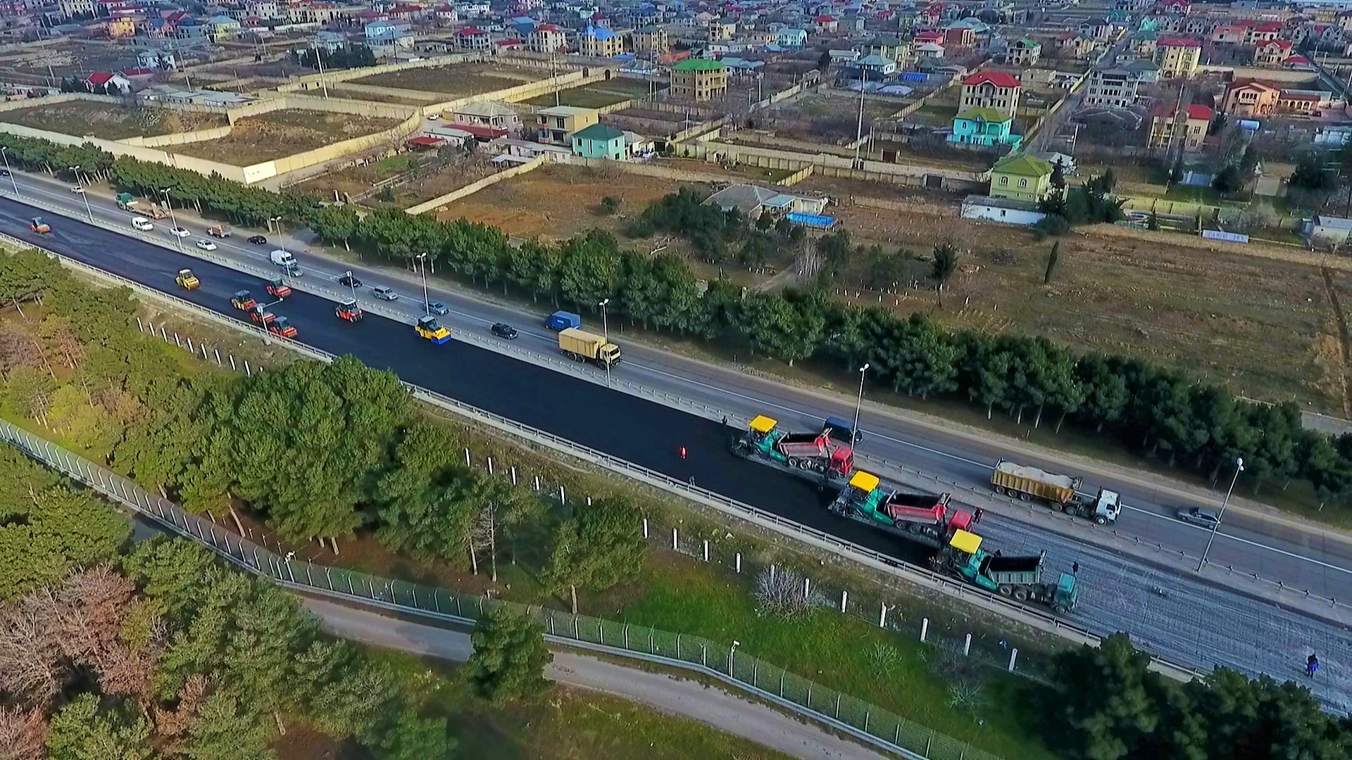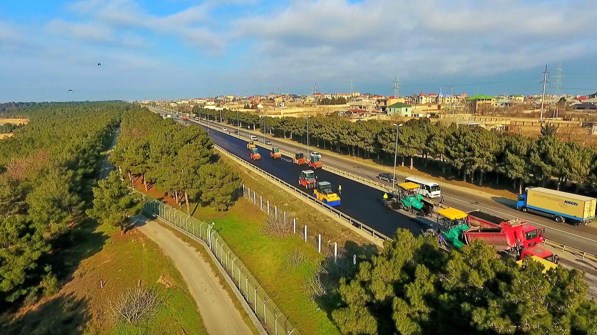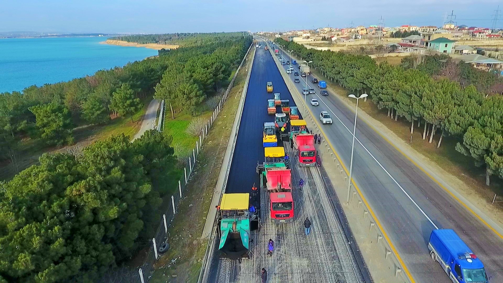 Bunun ardınca frezlənmiş və hamarlayıcı lay döşənmiş ərazilər iri və xırda dənəli olmaqla 2 laydan ibarət yeni asfalt-betonla örtülür. Artıq Sumqayıtdan Ceyranbatan qəsəbəsini keçməklə “VAZ dairəsi” deyilən ərazi istiqamətində 11.5 km yolda qeyd olunan işlər görülərək yekunlaşdırılıb. Hazırda sözügedən istiqamətdə son 2.5 km-lik ərazidə hazırda qazma-dolma işləri görülür, yeni yol yatağı və yol əsası inşa edilir.