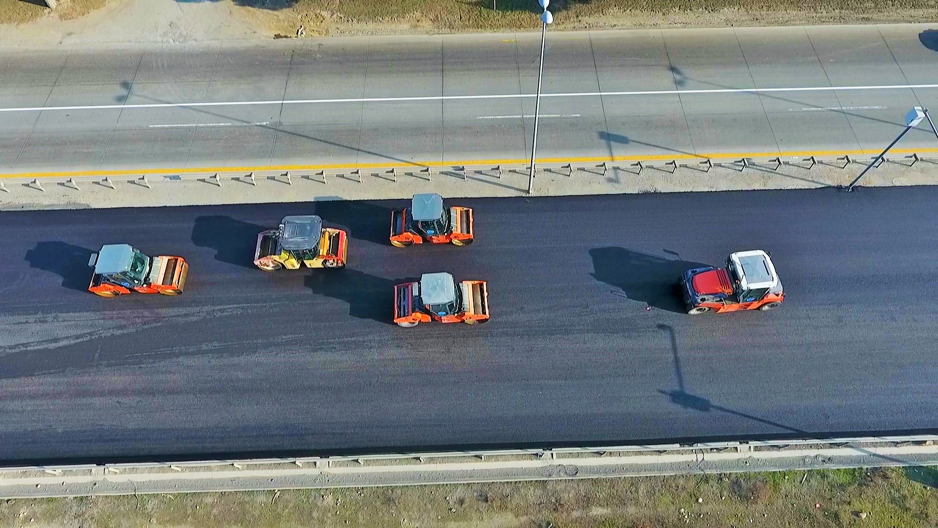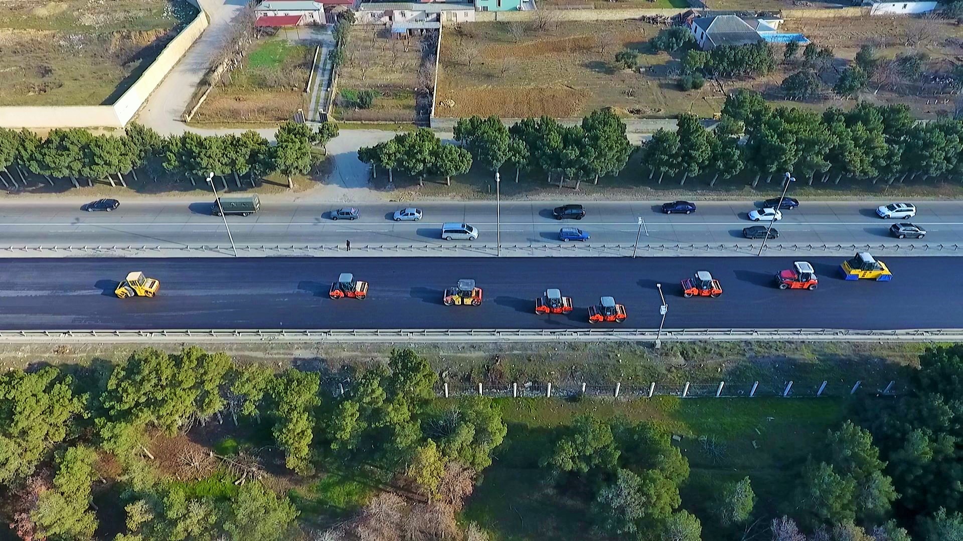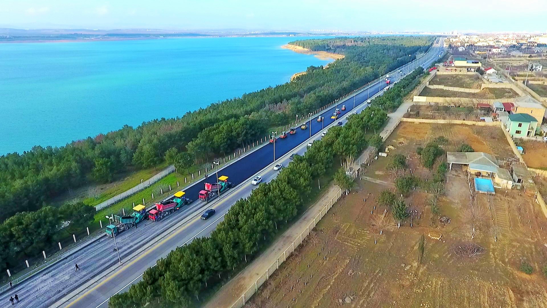 Bunun ardınca frezlənmiş və hamarlayıcı lay döşənmiş ərazilər iri və xırda dənəli olmaqla 2 laydan ibarət yeni asfalt-betonla örtülür. Artıq Sumqayıtdan Ceyranbatan qəsəbəsini keçməklə “VAZ dairəsi” deyilən ərazi istiqamətində 11.5 km yolda qeyd olunan işlər görülərək yekunlaşdırılıb. Hazırda sözügedən istiqamətdə son 2.5 km-lik ərazidə hazırda qazma-dolma işləri görülür, yeni yol yatağı və yol əsası inşa edilir.