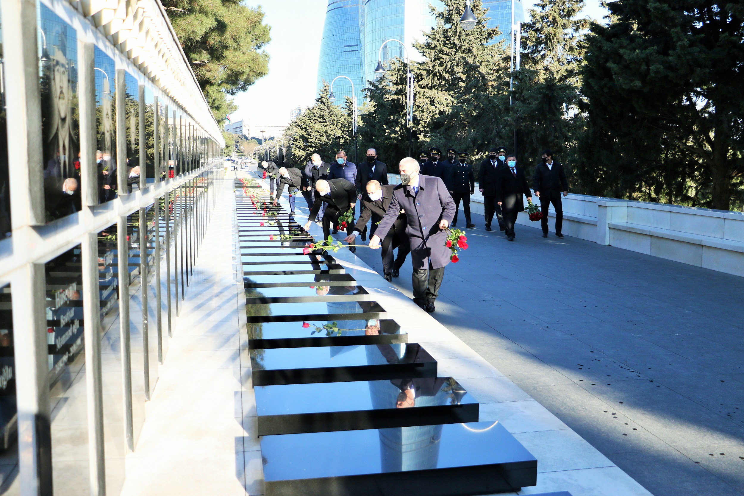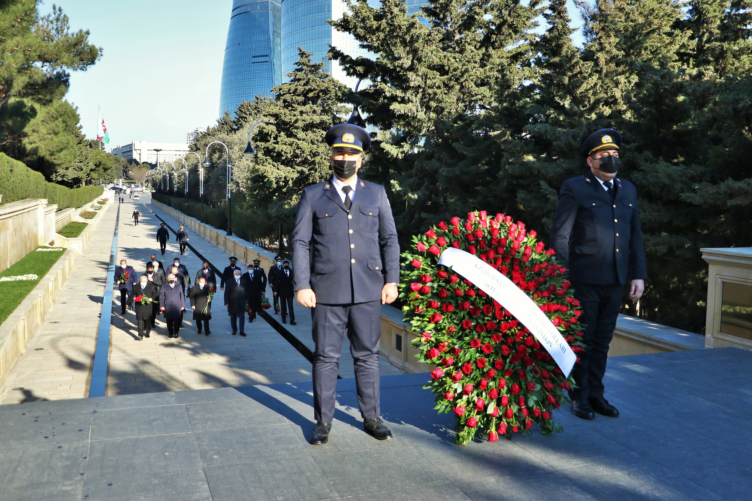 Daha sonra Azərbaycan Avtomobil Yolları Dövlət Agentliyinin rəhbərliyi Şəhidlər xiyabanına gələrək ölkəmizin azadlığı və suverenliyi uğrunda mübarizədə canlarından keçmiş Vətən övladlarının xatirəsini ehtiramla yad etdilər, “Əbədi məşəl” abidəsinin önünə əklil qoydular.