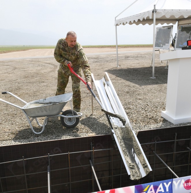 "Böyük qayıdış başlayıb. Bu gün burada təməl daşını qoyduğum hava limanı dövlətimizin gücünü göstərir. Bir qədər bundan aralıda yeni Horadiz-Zəngilan avtomagistral yolunun təməli də qoyulacaq. Mövcud yola paralel olan 4-6 zolaqlı bu yol geniş imkanlar açacaq. Zəngilanı Azərbaycanın digər rayonları və Naxçıvan Muxtar Respublikası ilə birləşdirmək üçün bu layihələrin çox böyük əhəmiyyəti vardır. Bu hadisə münasibətilə zəngilanlıları və bütün Azərbaycan xalqını təbrik edirəm."