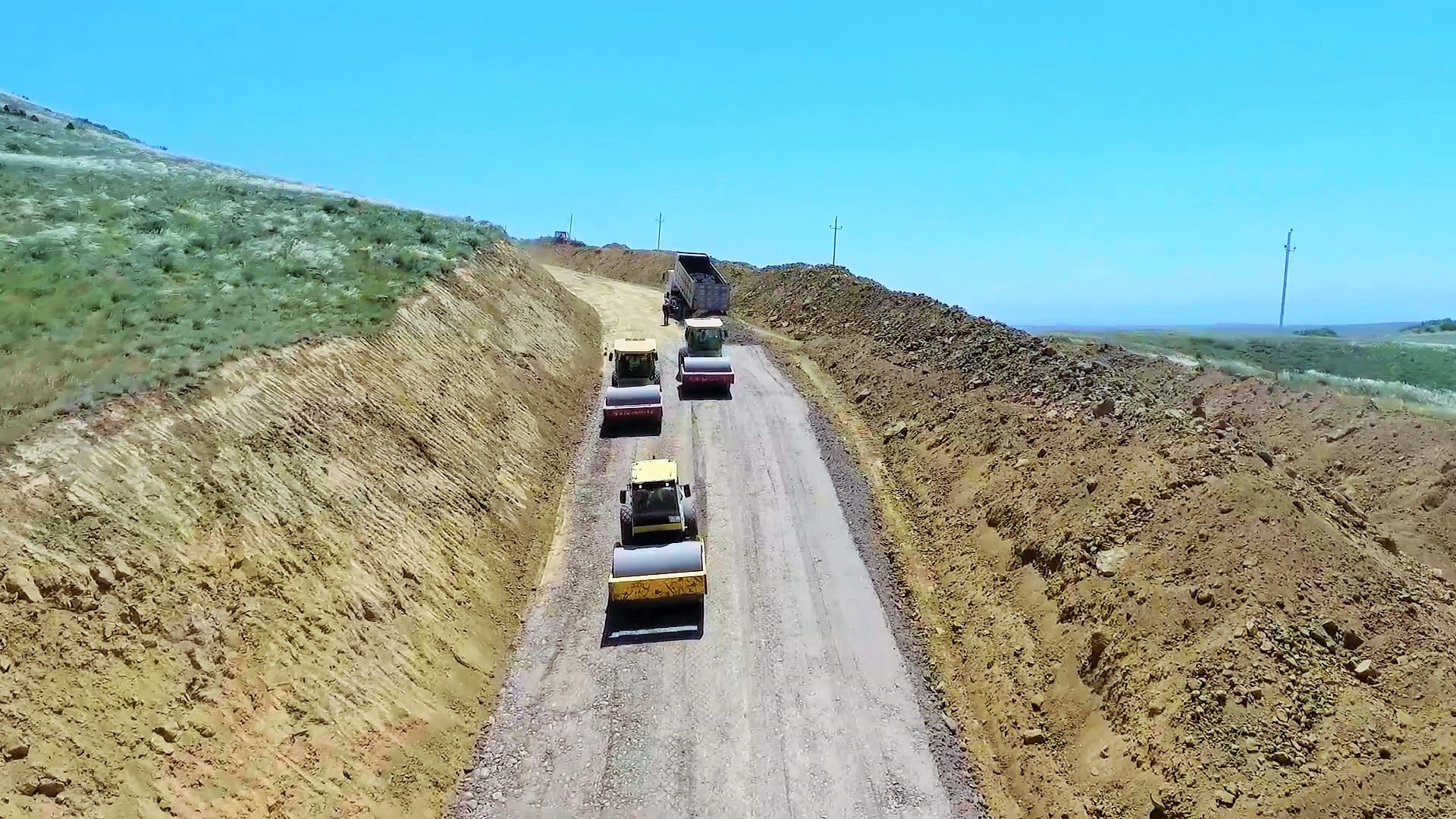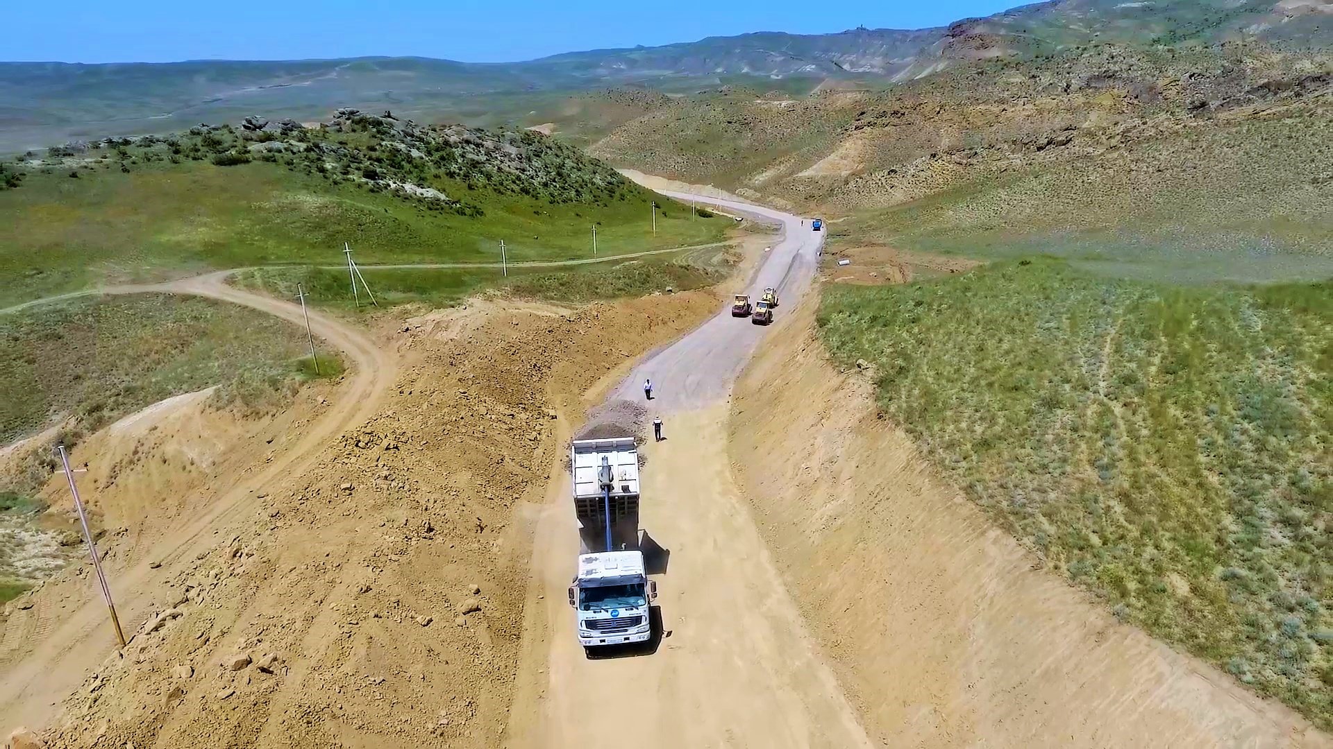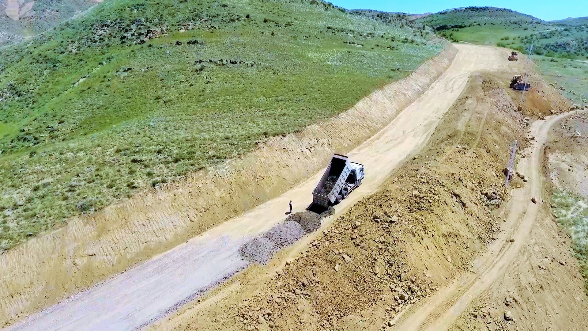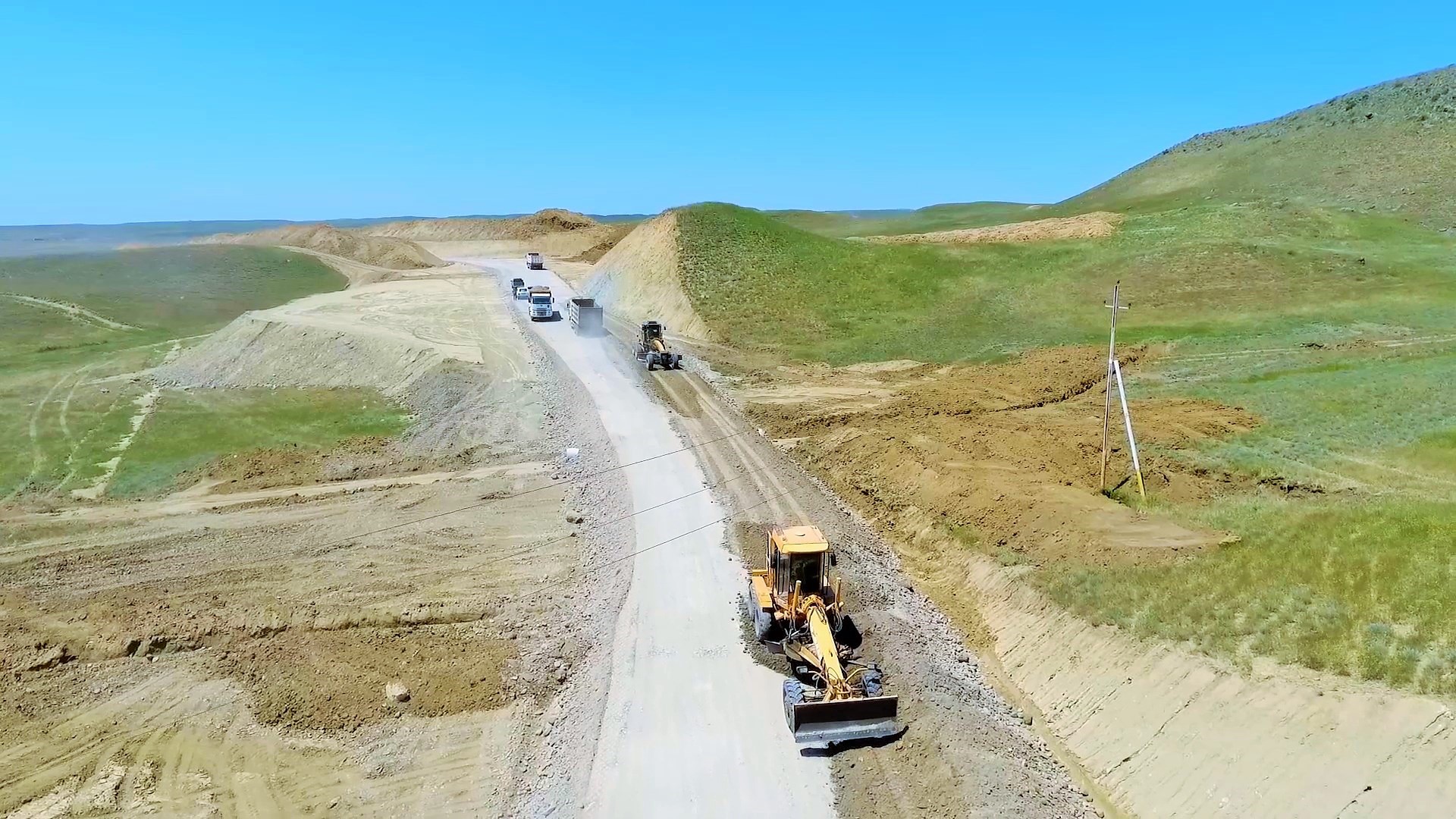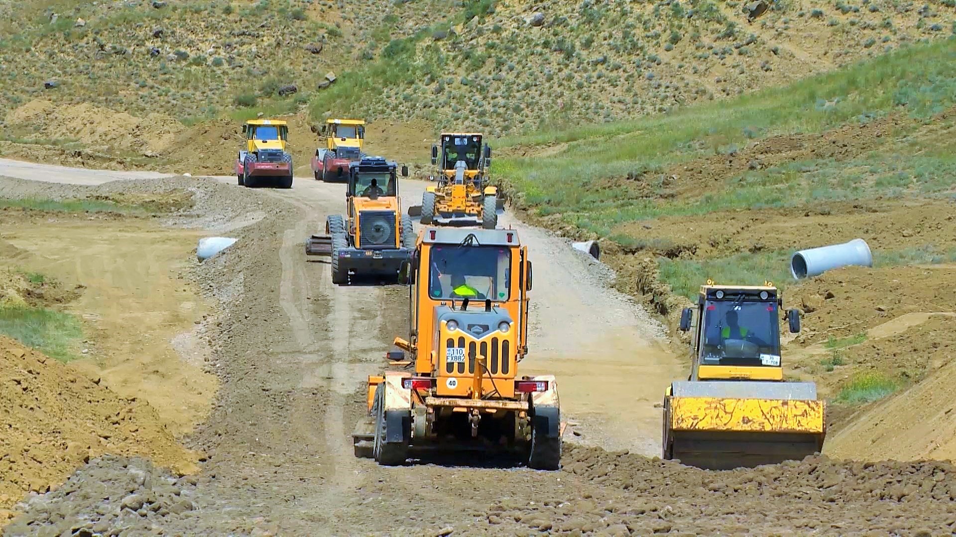 Hazırda yeni yol boyu yararsız qrunt qazılaraq çıxarılır, əvəzinə yararlı çınqıl materialı tökülərək kipləşdirmə işləri aparılaraq yeni yol yatağı inşa edilir. Bundan başqa yolun relyefdən aşağı olan hissələrində torpaq yatağının qaldırılması üçün işlər görülür, yolun normativ eninin alınması üçün müəyyən hissələrdə qaya tipli süxurlar mexanizmlə kəsilərək, yol yatağı genişləndirilir.
