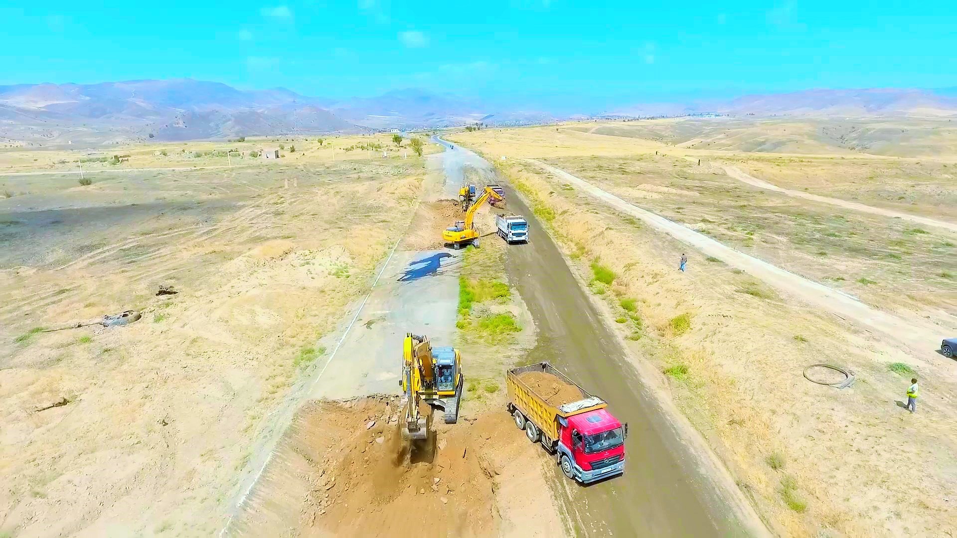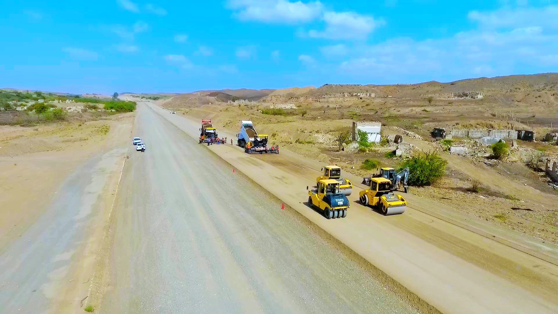 Görülən işlərə paralel olaraq, tikinti ərazisinə cəlb olunmuş xüsusi texnikaların çevik hərəkətinin təmin olunması məqsədi ilə yol çiyinlərinin minalardan və partlamamış hərbi sursatlardan təmizlənməsi işləri də aparılır.