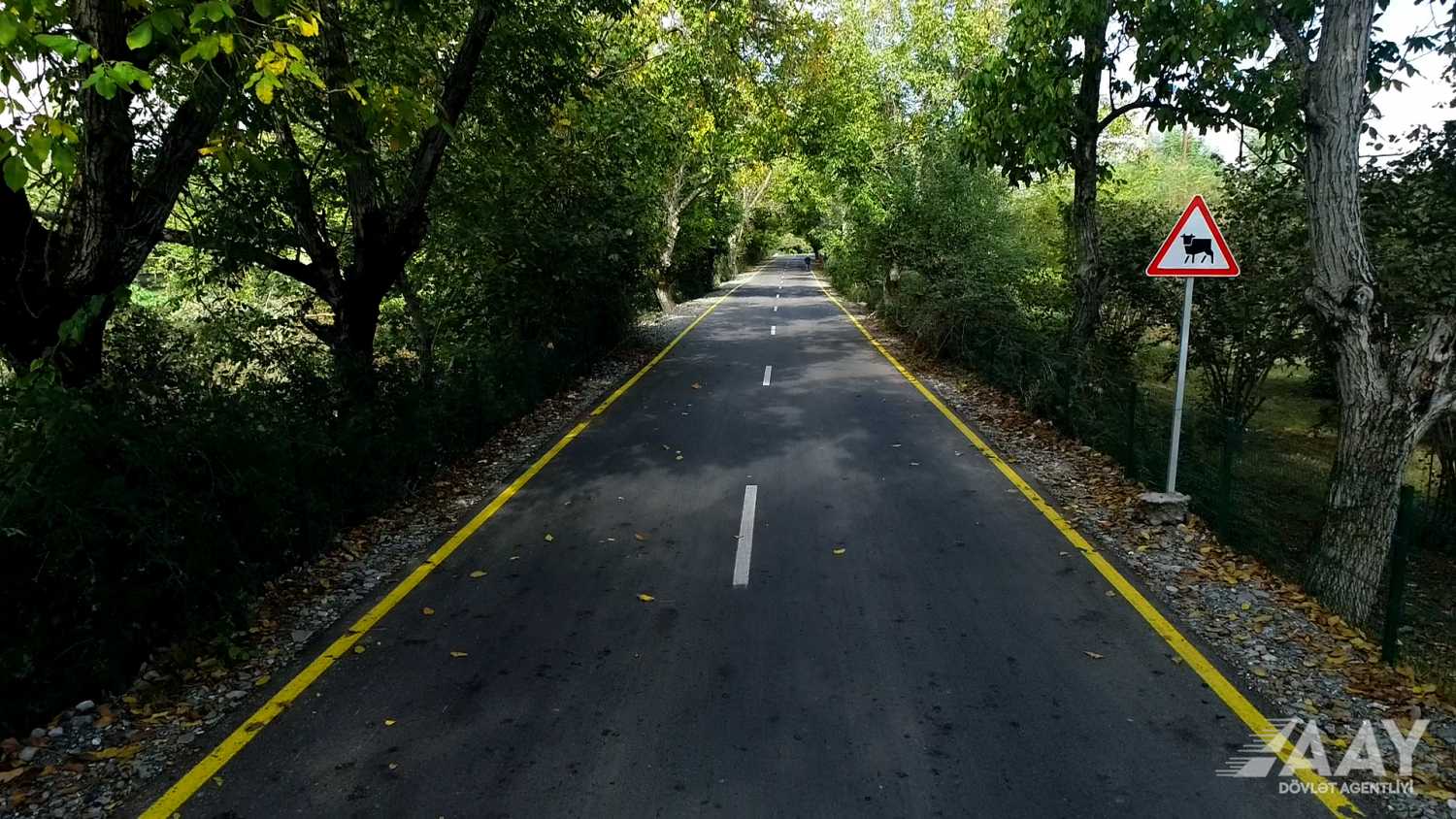 Texnoloji ardıcıllığa uyğun olaraq daha sonra lazımi hündürlükdə optimal qum-qırmadaş qarışığından yol əsasının tikintisi, yola yeni asfalt-beton örtüyünün döşənməsi işləri icra olunub.