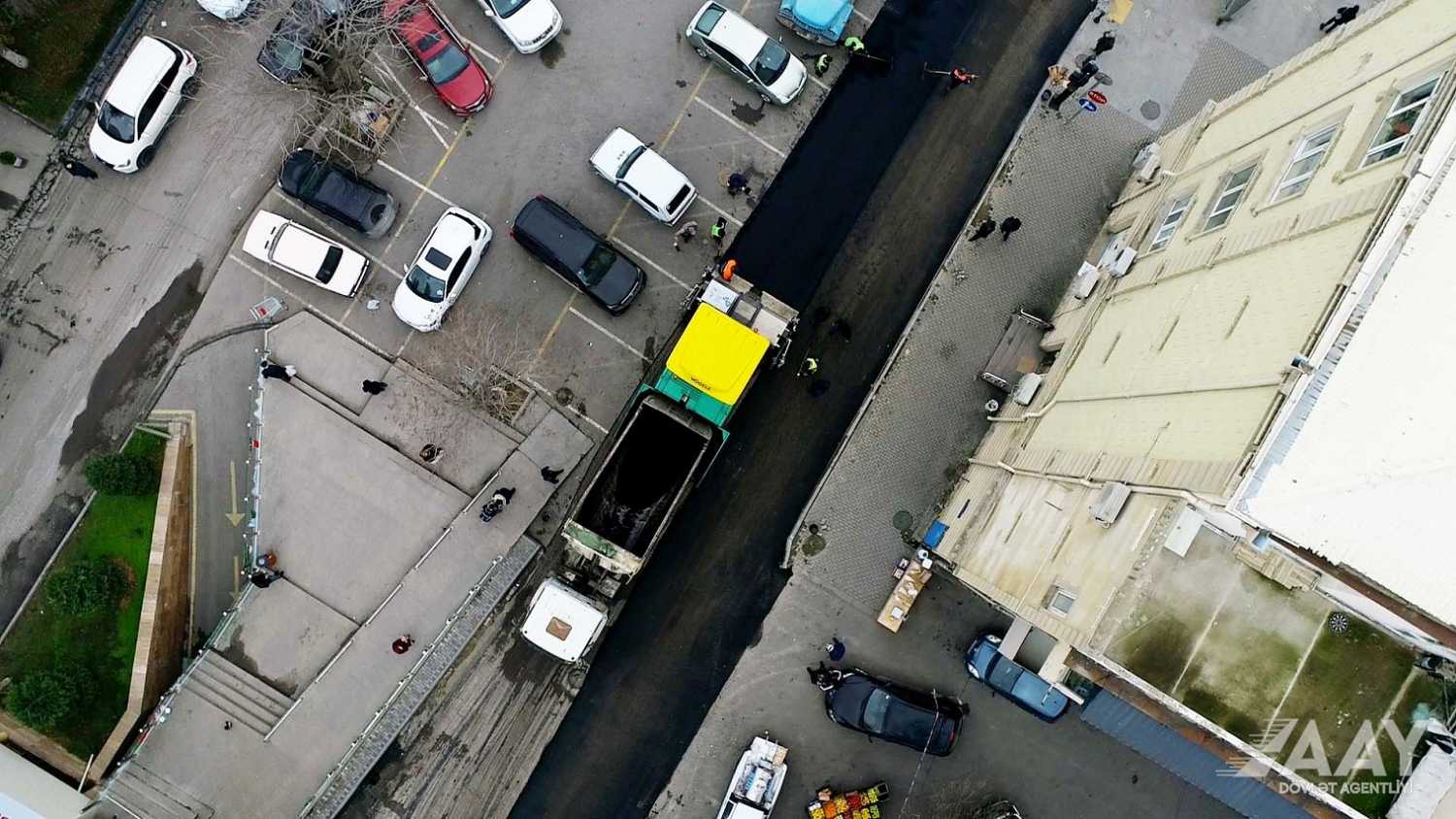 “İnşaat Norma və Qaydaları”nın tələblərinə əsasən küçəyə yeni asfalt-beton örtüyünün döşənməsi işləri aparılıb.