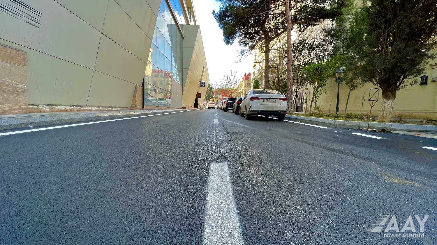 Təmir çərçivəsində küçənin köhnə asfalt-beton örtüyünün üst qatının frezlənərək kənara daşınması, 300 p/m köhnə səki daşlarının bərpası işləri görülüb, küçəyə 600 p/m yeni bordür daşı düzülüb.