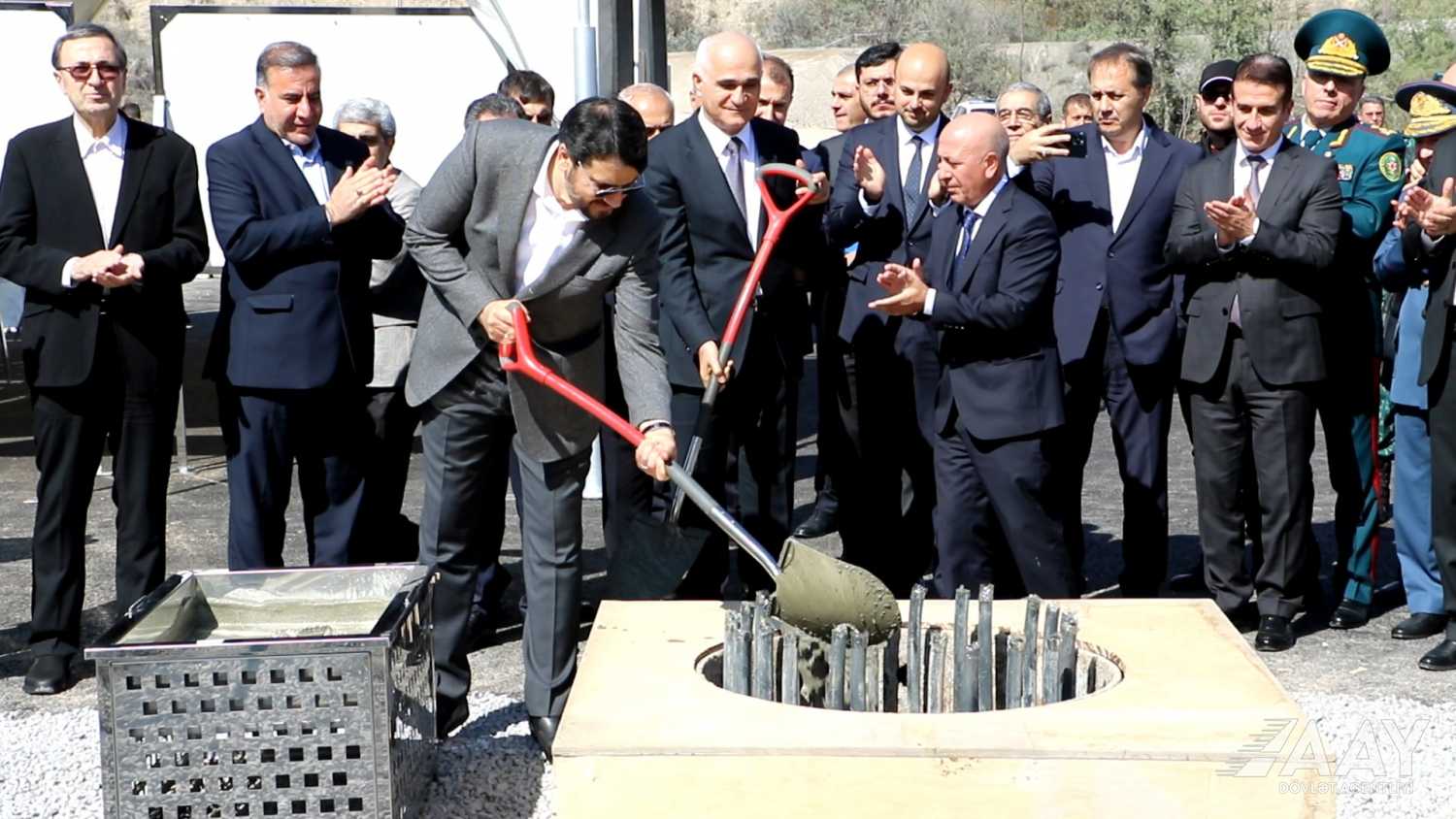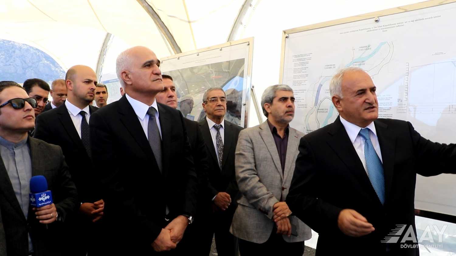 Tədbirdə Baş nazirinin müavini, Azərbaycanla İran arasında iqtisadi, ticarət və humanitar sahələrdə əməkdaşlıq üzrə Dövlət Komissiyasının həmsədri Şahin Mustafayev və İranın yol və şəhərsalma naziri, Komissiyanın İran tərəfdən həmsədri Mehrdad Bəzrpaş, həmçinin Azərbaycan Avtomobil Yolları Dövlət Agentliyinin İdarə heyəti sədrinin müavini Əvəz Qocayev və digər rəsmi şəxslər iştirak ediblər.