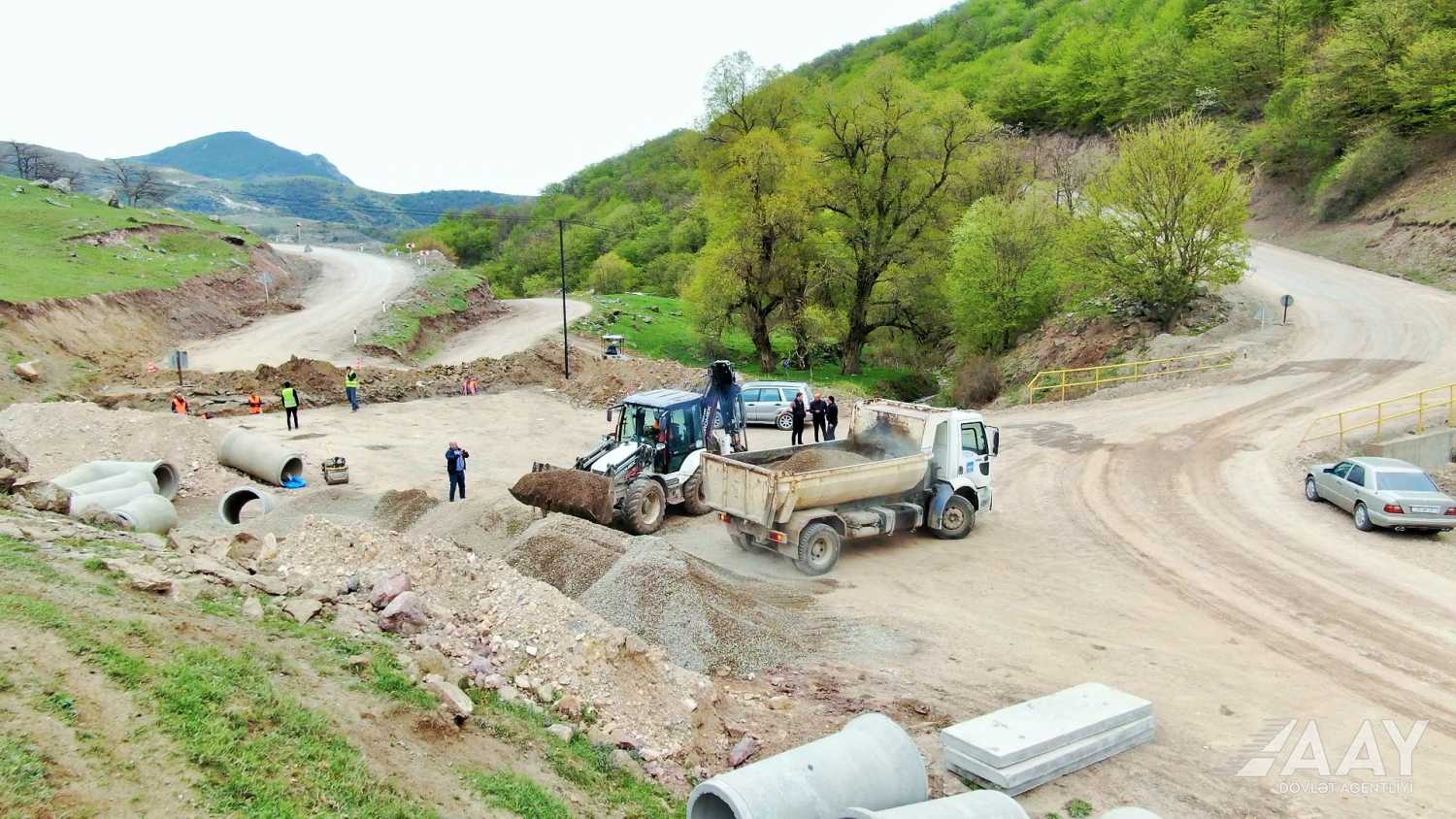 Tikinti layihəsinə uyğun hazırda yolboyu torpaq işləri, yol yatağı və yol əsasının inşası, zəruri yerlərdə müxtəlif diametrlərə malik suötürücü boruların quraşdırılması işləri aparılır.