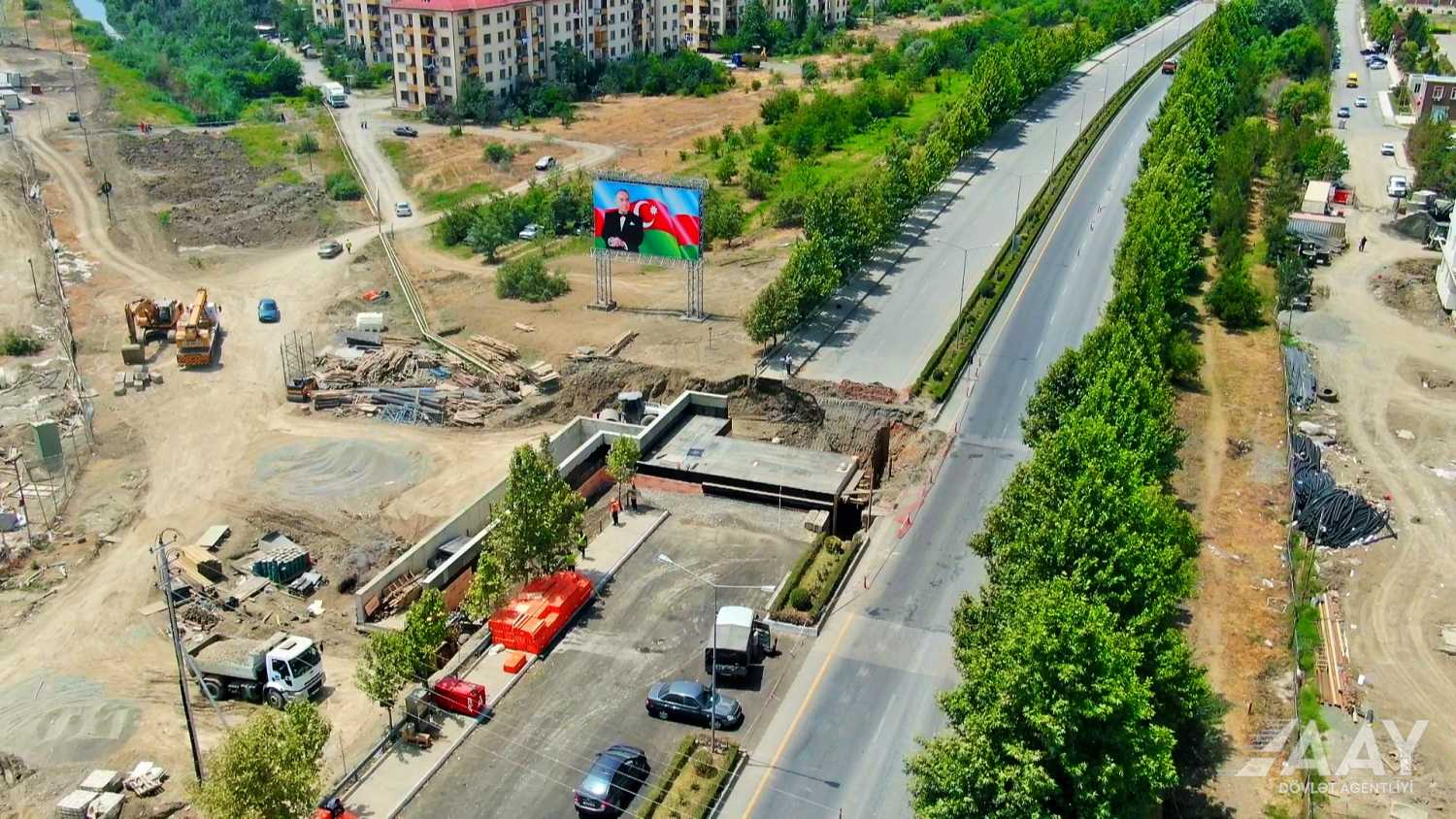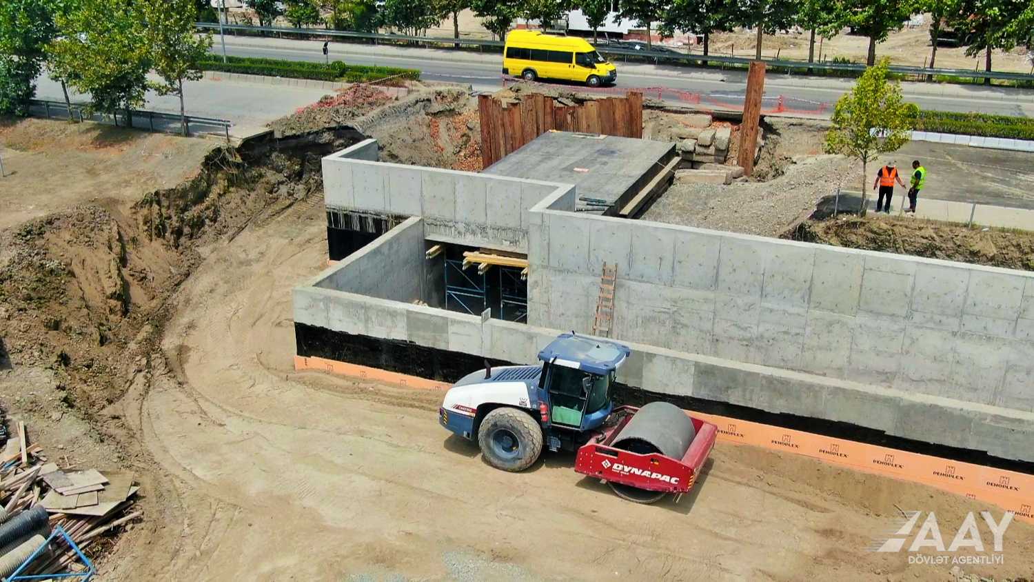 Yevlax şəhərində yeraltı piyada keçidinin inşası davam edir FOTO