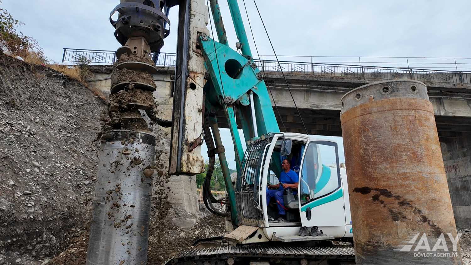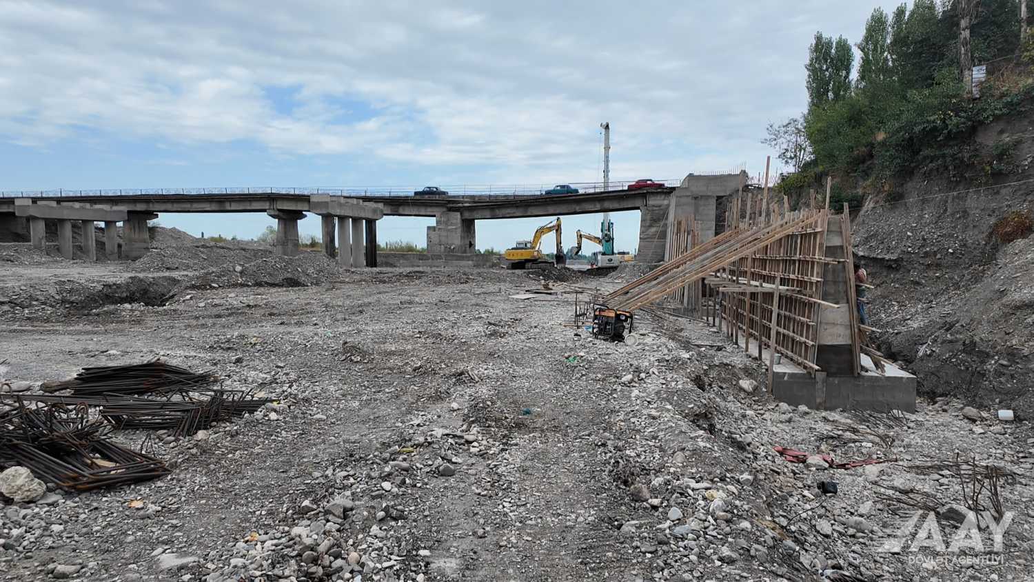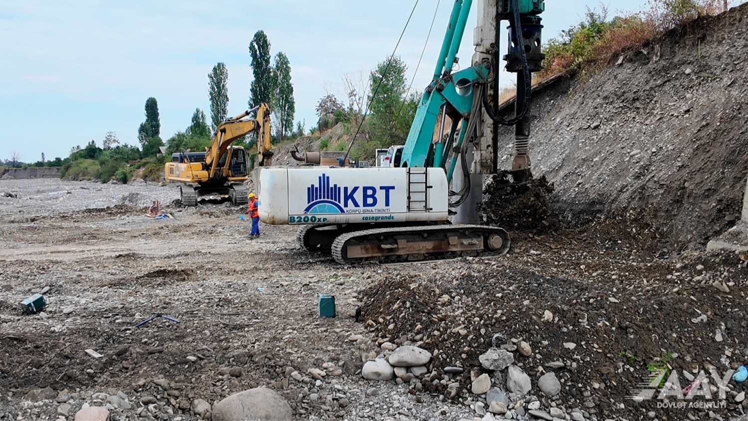 Qaraçay çayı üzərində yeni körpünün inşası davam etdirilir FOTO