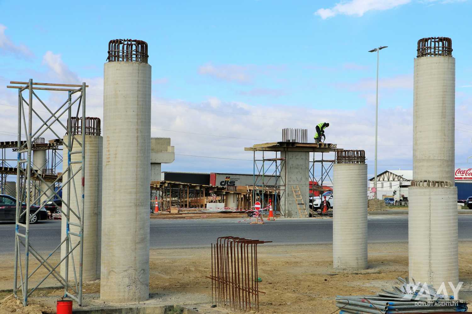Hazırda keçidin dayaqlarının tikintisi davam edir.