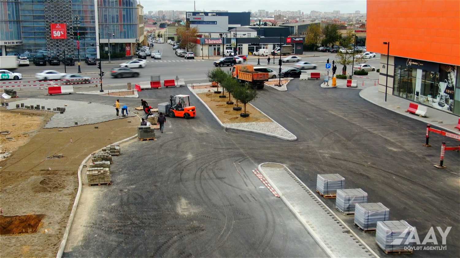 Ərazidə yeni asfalt-beton örtüyü döşənib, avtonəqliyyat vasitələrinin rahat və təhlükəsiz hərəkətinin təşkili üçün işıqforlar və siqnal dirəkləri quraşdırılıb.