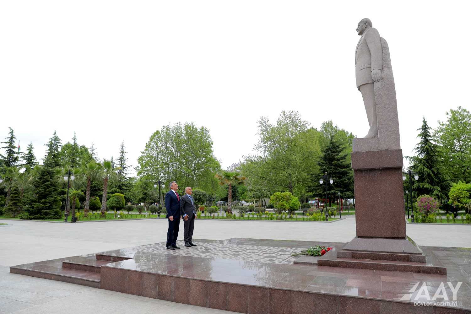 Qəbuldan əvvəl Vüsal Nəsirli və Masallı Rayon İcra Hakimiyyətinin başçısı Araz Əhmədov Ümummilli Lider Heydər Əliyevin abidəsini ziyarət ediblər.