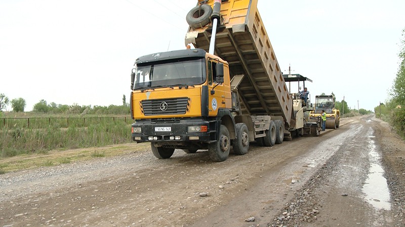 Sadalanan işlərə paralel olaraq qum-çınqıl və optimal qırmadaş qarışığından ibarət yol əsasının tikintisi işləri yekunlaşan hissələrin asfaltlanmasına da başlanılıb. Artıq yolun 5 km-lik hissəsinə 1 qat olmaqla yeni asfalt-beton örtüyü döşənib. Ümumilikdə layihə çərçivəsində yolun 85 min m2 sahəsinə 2 qat olmaqla 12 sm qalınlığında asfalt-beton örtüyün döşənməsi nəzərdə tutulub.