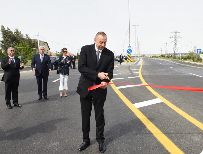 Dövlətimizin başçısı yeni körpünün rəmzi açılışını bildirən lenti kəsdi.