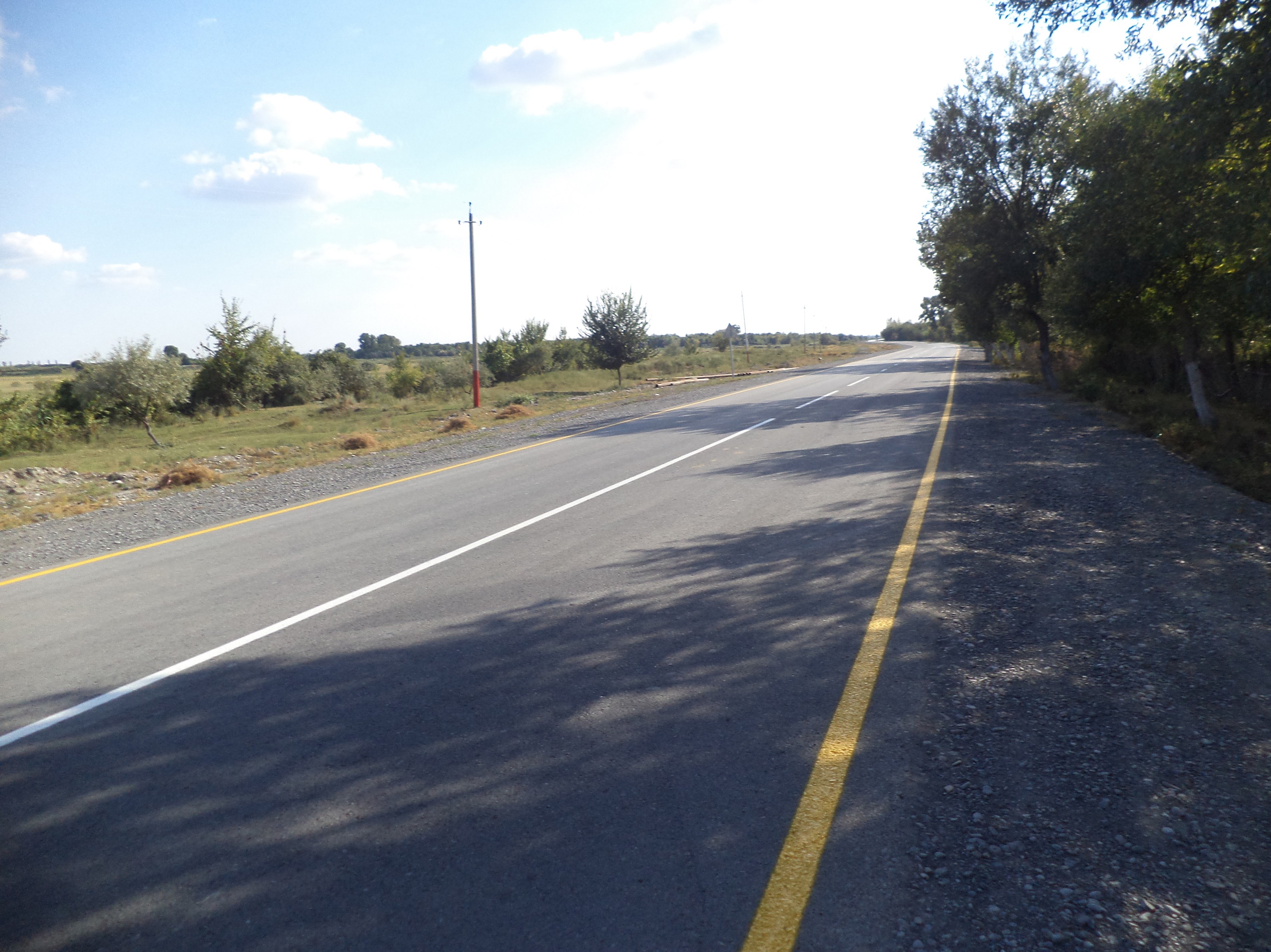 Müvafiq olaraq yolun çiyinləri də uyğun material doldurularaq kipləşdirilib. Sözügedən işlər zamanı 76 000 kubmetr optimal çınqıl qarışı və 24 850 kubmetr qırmadaş istifadə olunub.