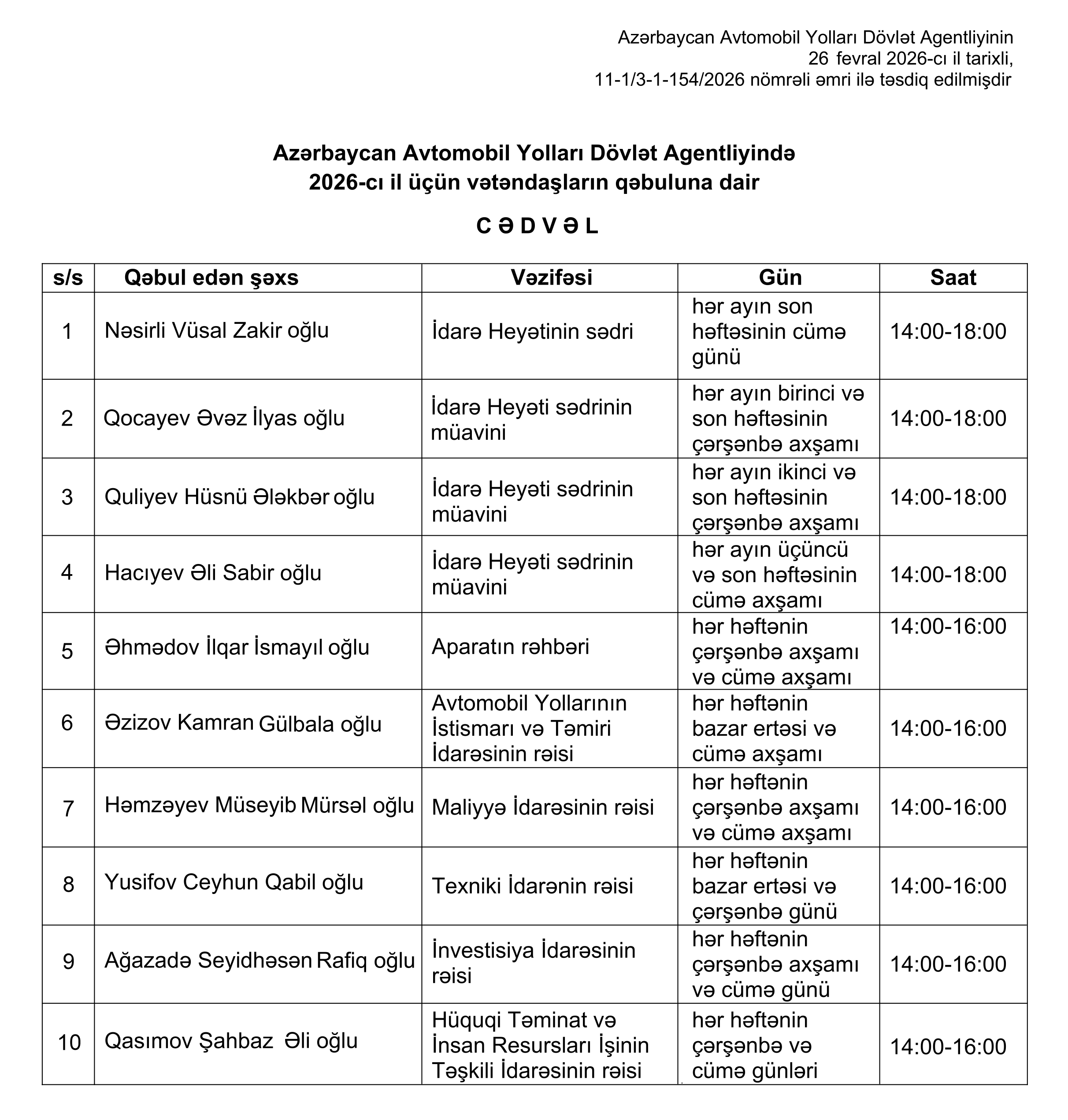 Qəbul günləri